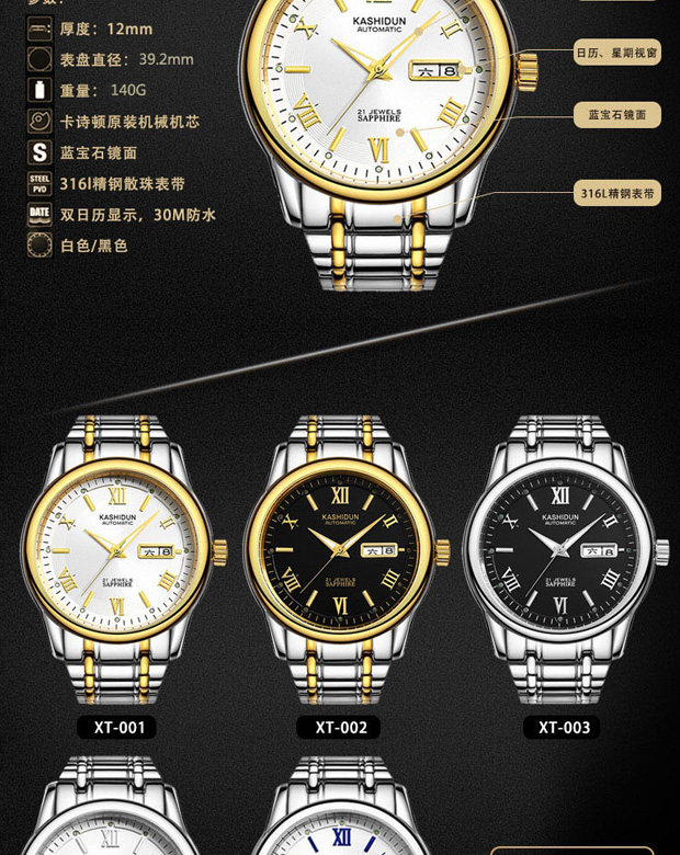 卡诗顿 Механические механические часы, водонепроницаемые модные швейцарские часы, мужские часы, полностью автоматический, популярно в интернете, 2018
