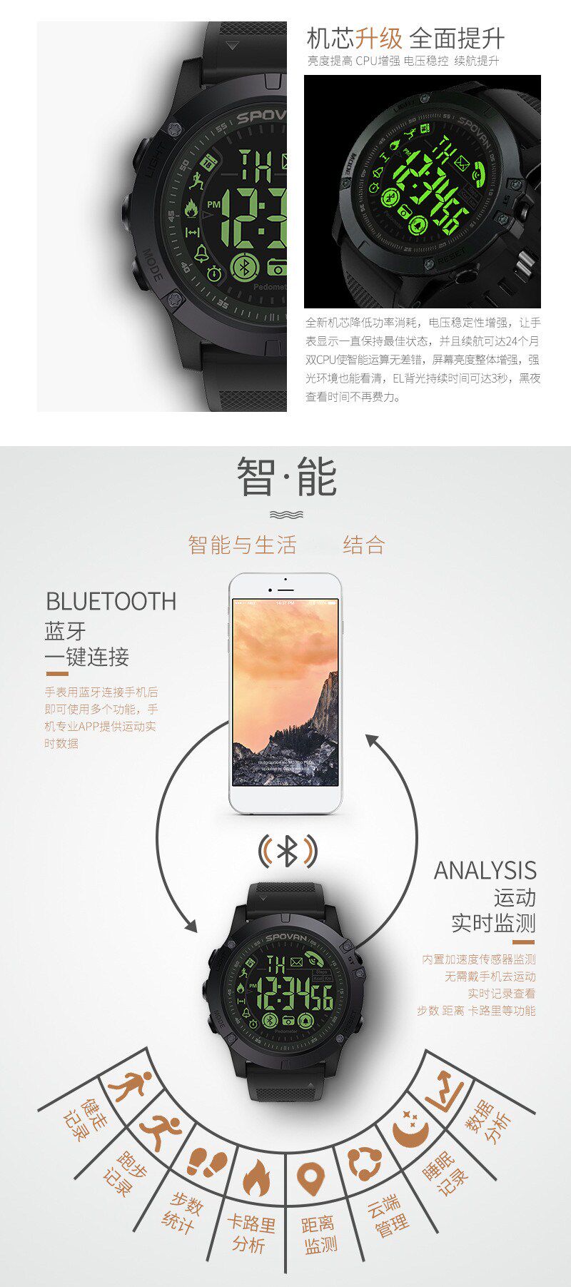 Долгая жизнь, без зарядка——Нормальная жизнь в течение 12 месяцев, модель, способствующая мощности, может длиться 24 месяца, попрощавшись с смущающим днем цифровой эры.