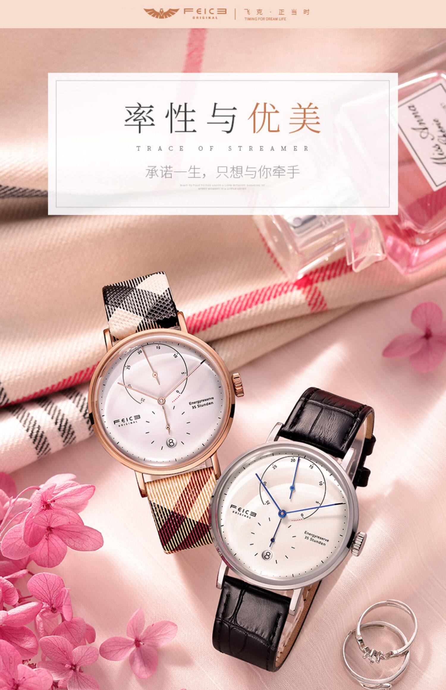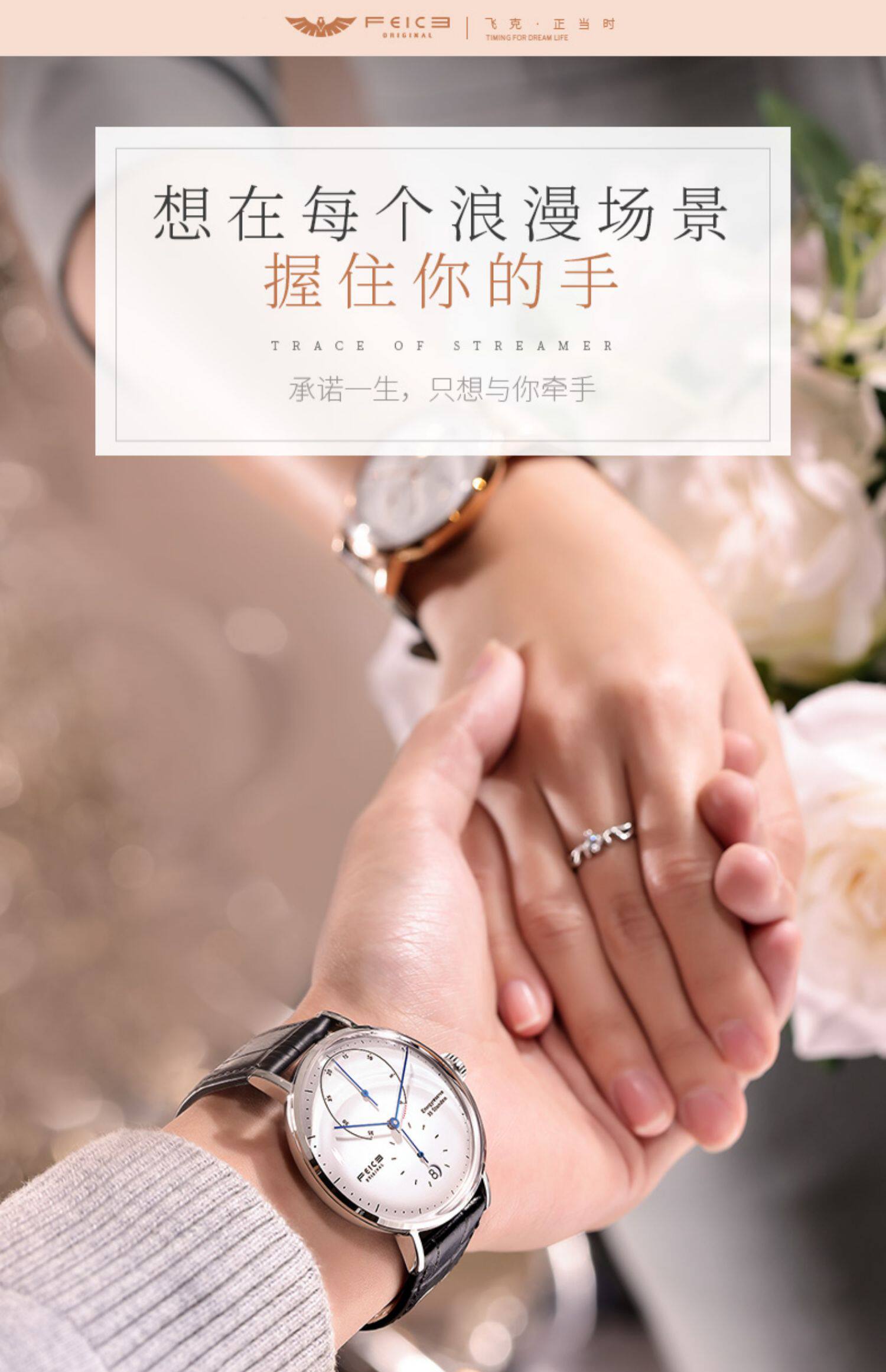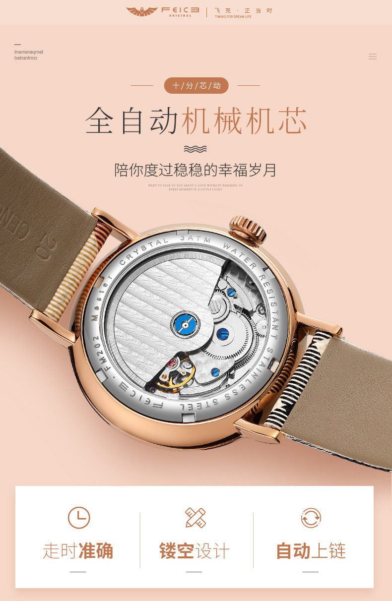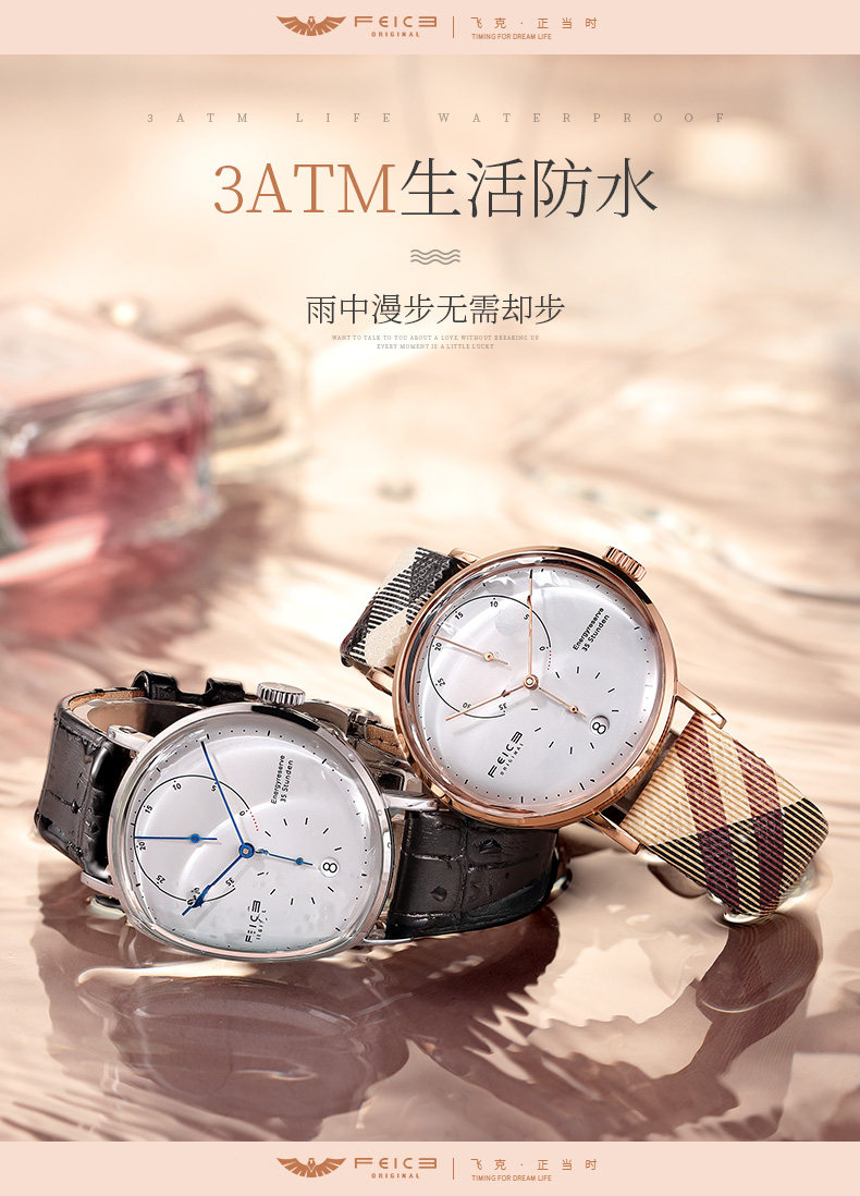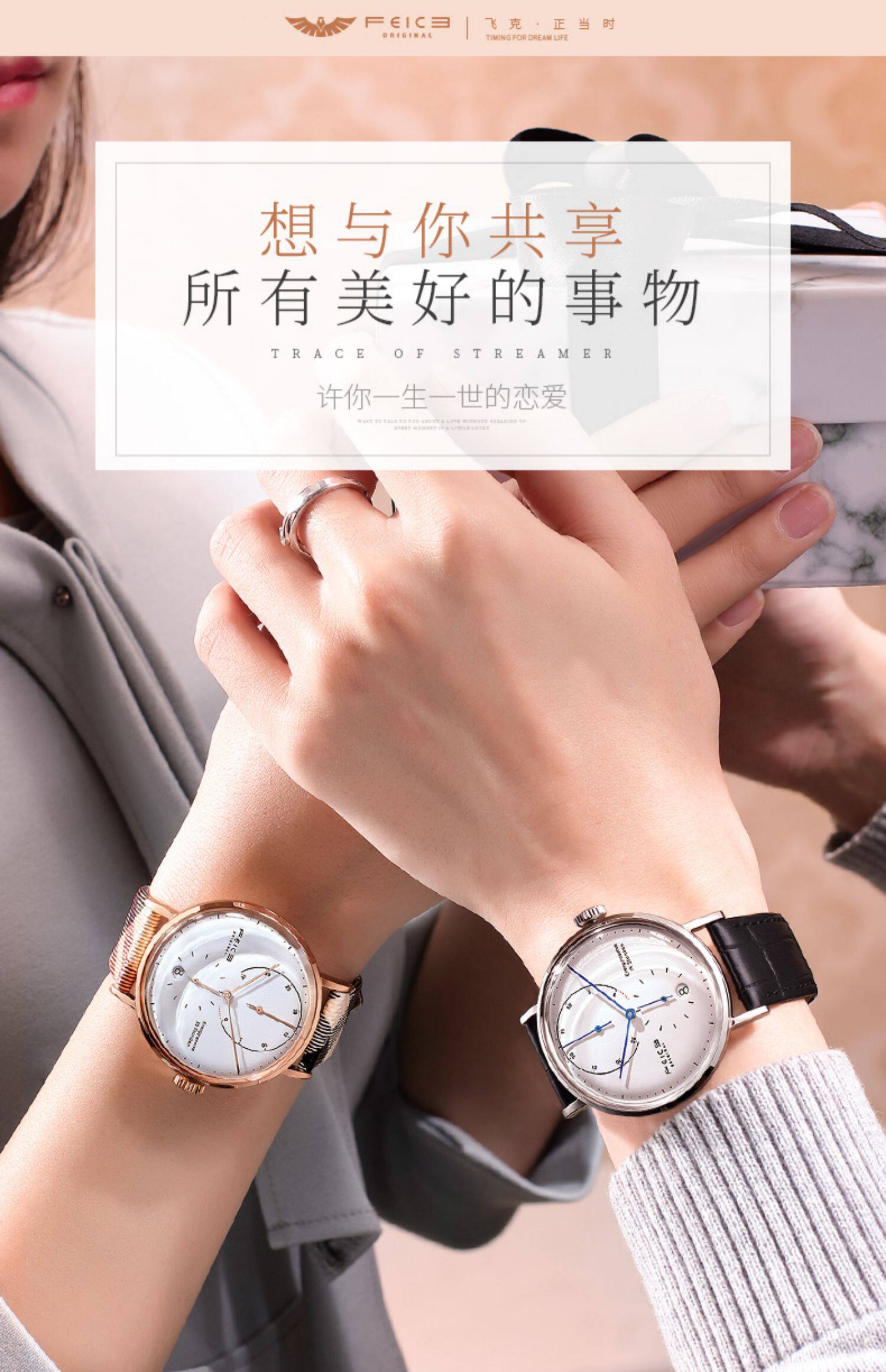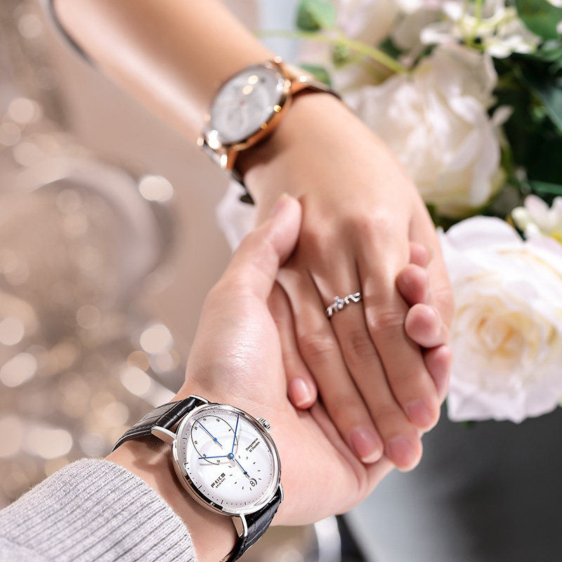 飞克 Модные парные часы для влюбленных, трендовые механические мужские часы подходит для мужчин и женщин, водонепроницаемый ремень, из натуральной кожи