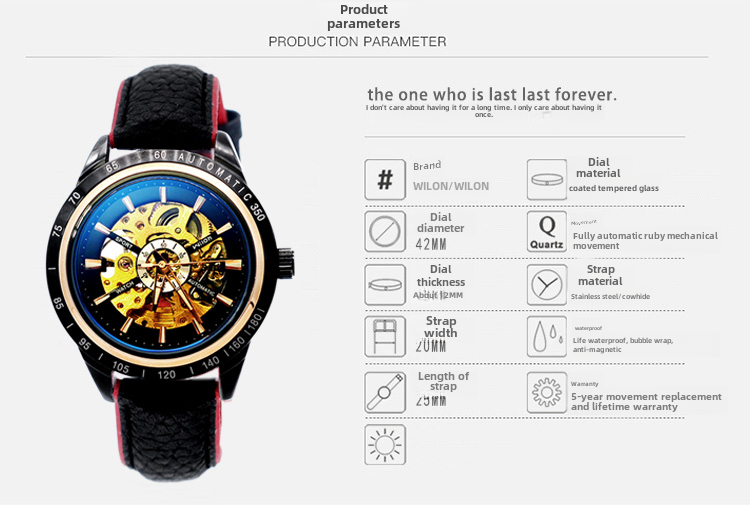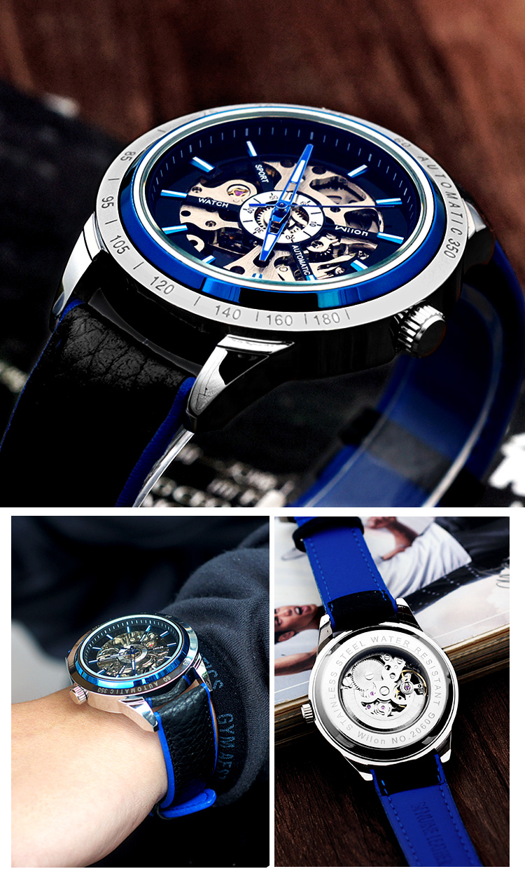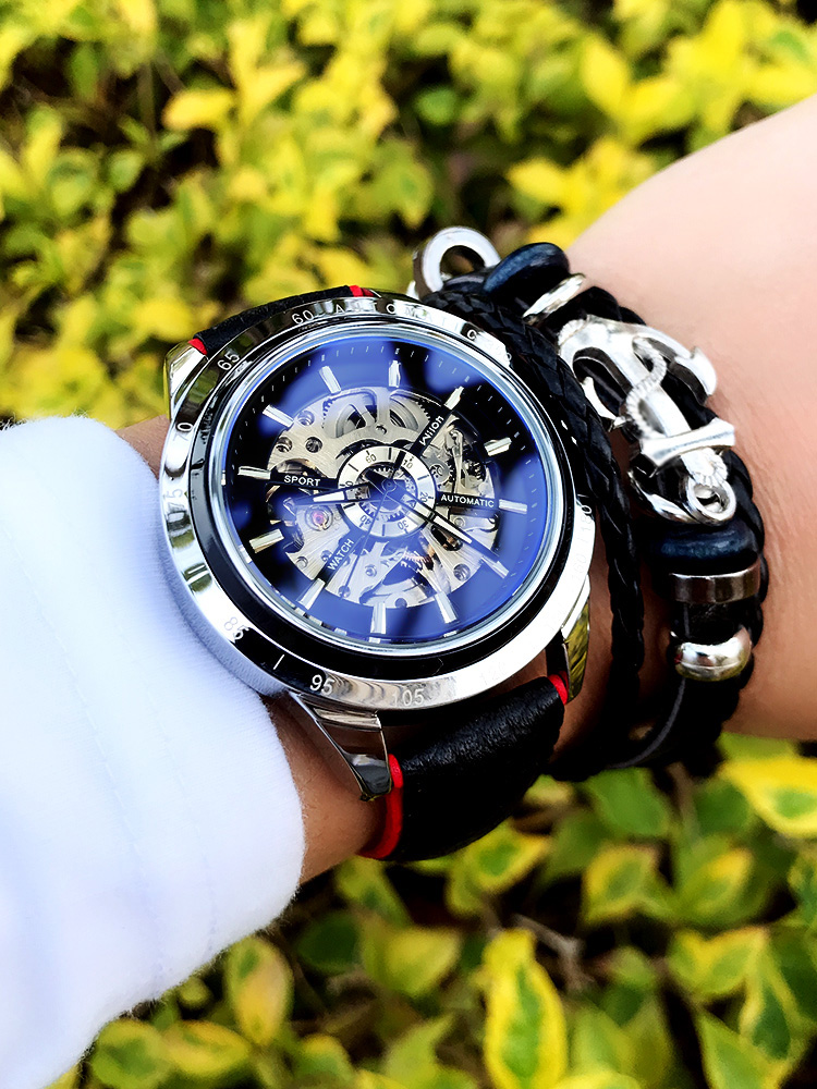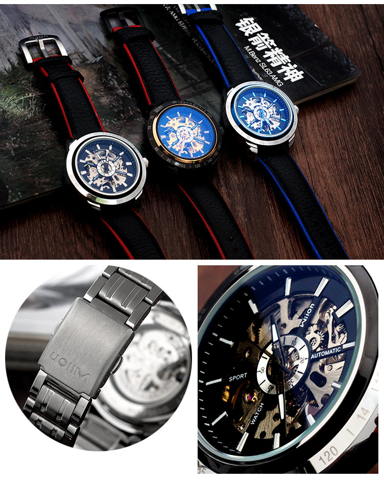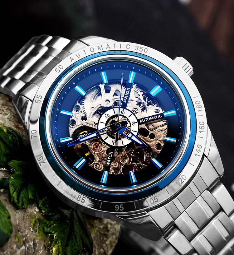 Механические водонепроницаемые спортивные механические часы, полностью автоматический