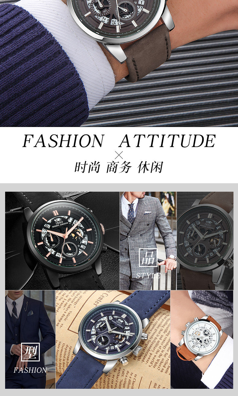 Водонепроницаемые модные трендовые швейцарские часы, спортивные механические мужские часы для отдыха, 2019, в корейском стиле, простой и элегантный дизайн