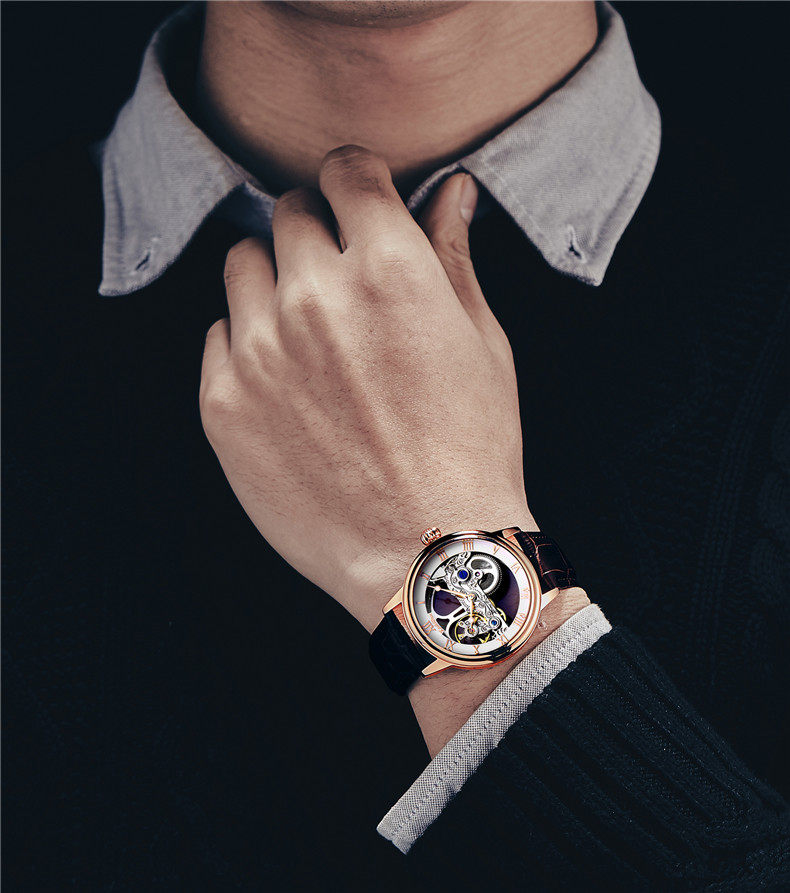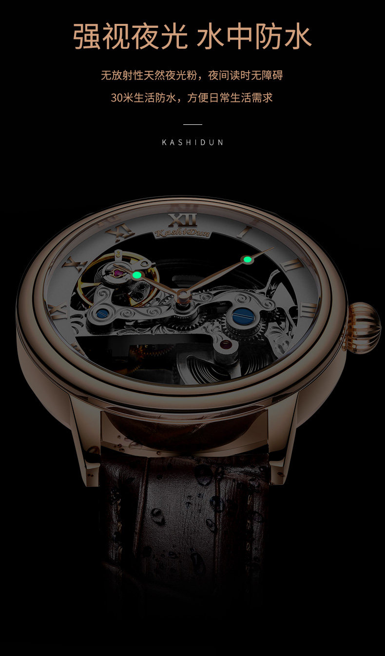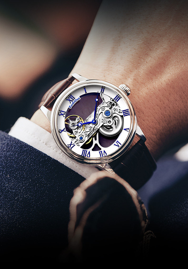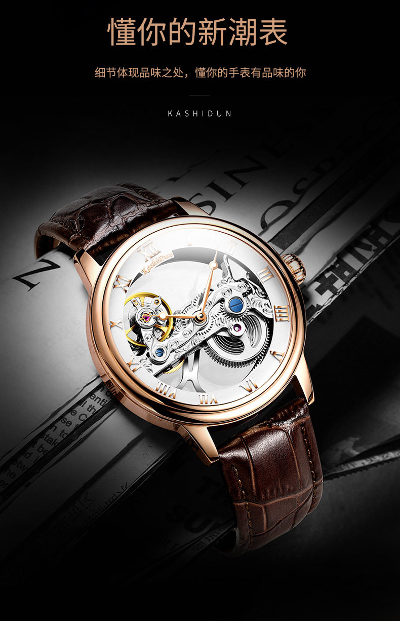 卡诗顿 Мужские часы, мужские механические водонепроницаемые механические часы для отдыха, полностью автоматический, из натуральной кожи, простой и элегантный дизайн, коллекция 2022