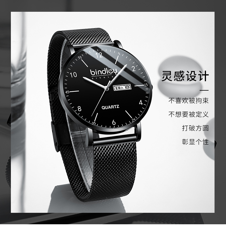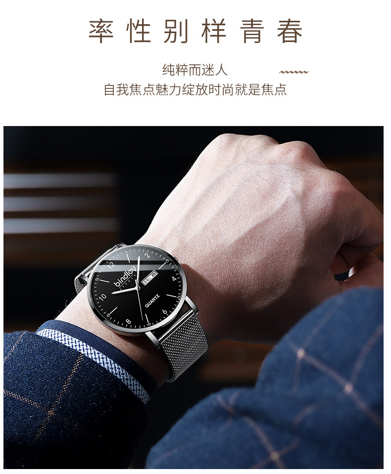 Водонепроницаемые мужские часы, трендовые механические кварцевые часы, простой и элегантный дизайн, подходит для подростков