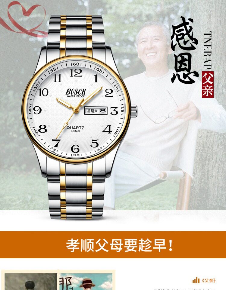 Мужской календарь, водонепроницаемый циферблат для пожилых людей, электронные кварцевые часы, мужские часы, для среднего возраста