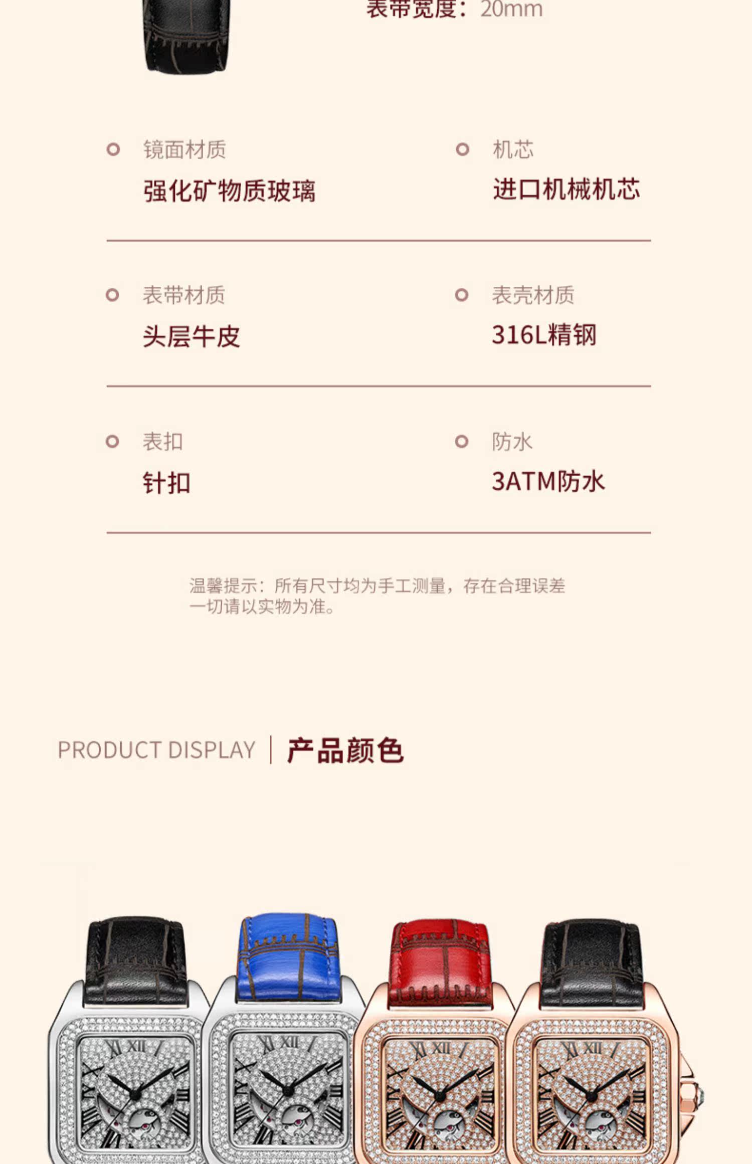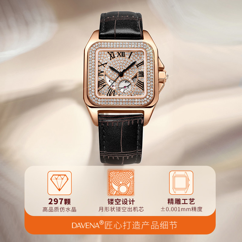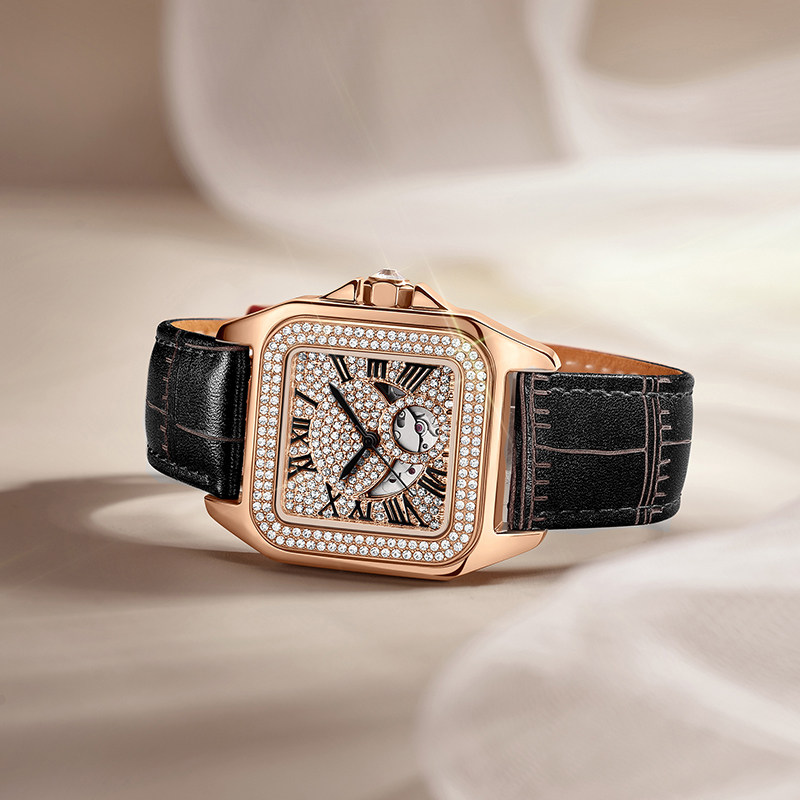 Механические квадратные механические часы, мужские часы, женский стиль, легкий роскошный стиль