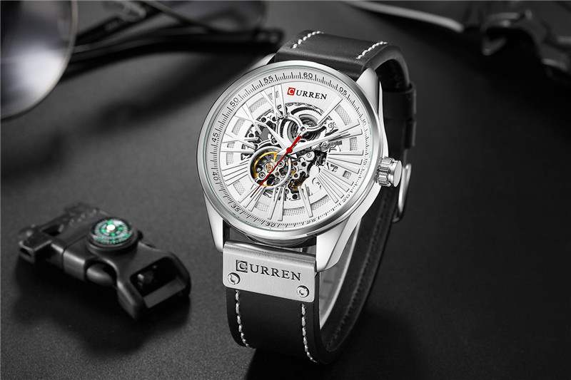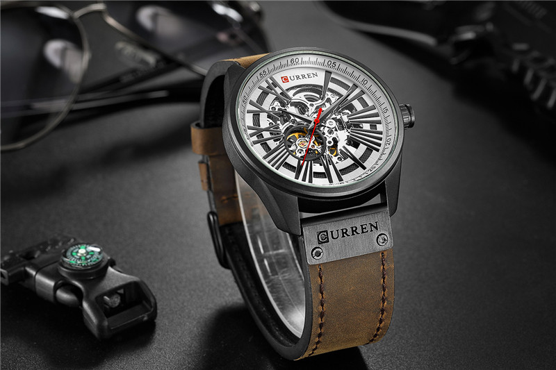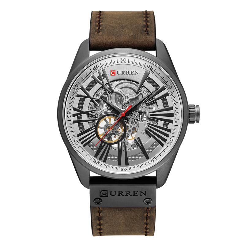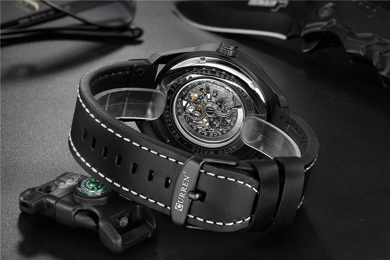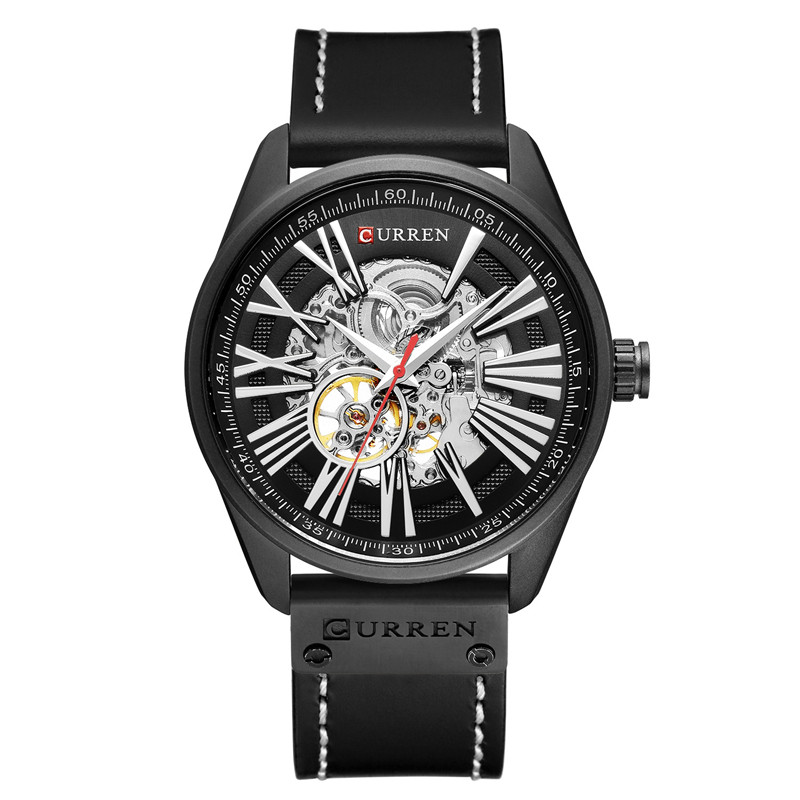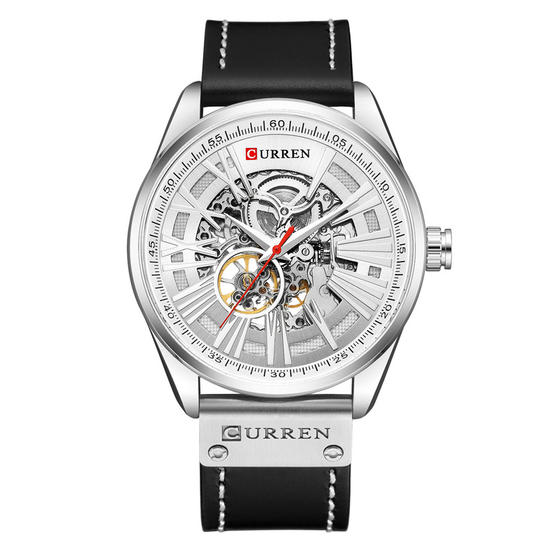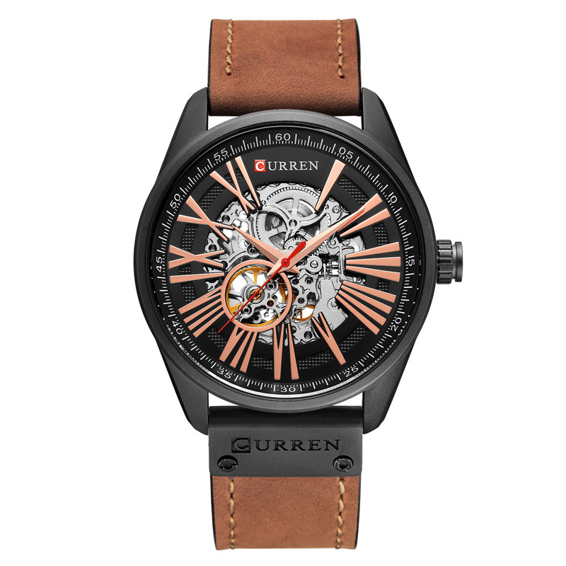 Трендовые водонепроницаемые модные механические швейцарские часы, полностью автоматический, из натуральной кожи