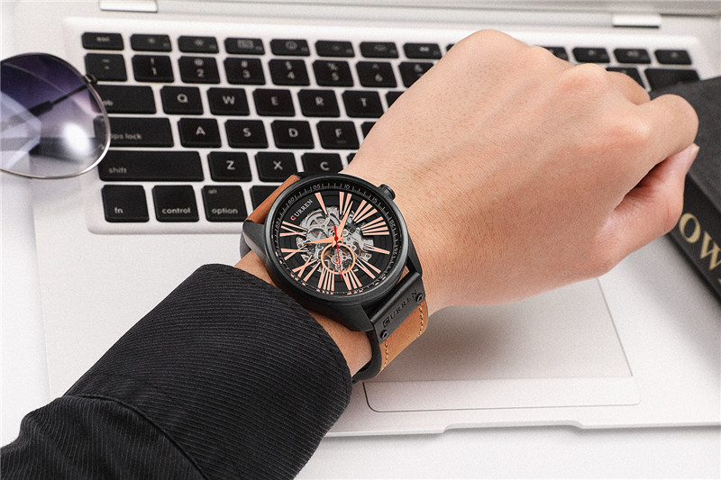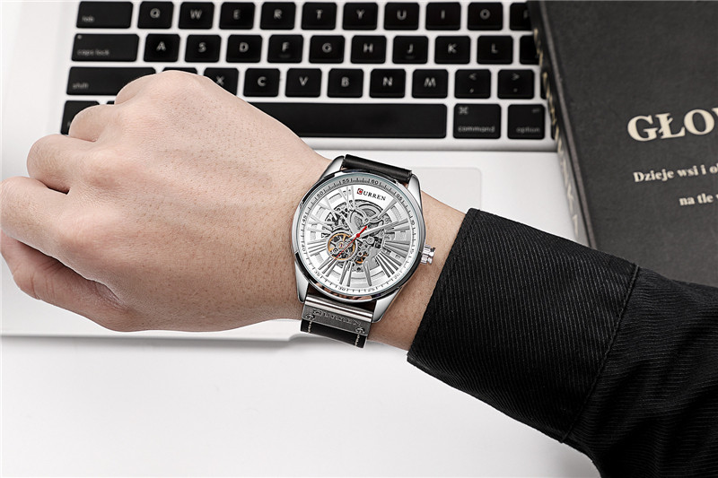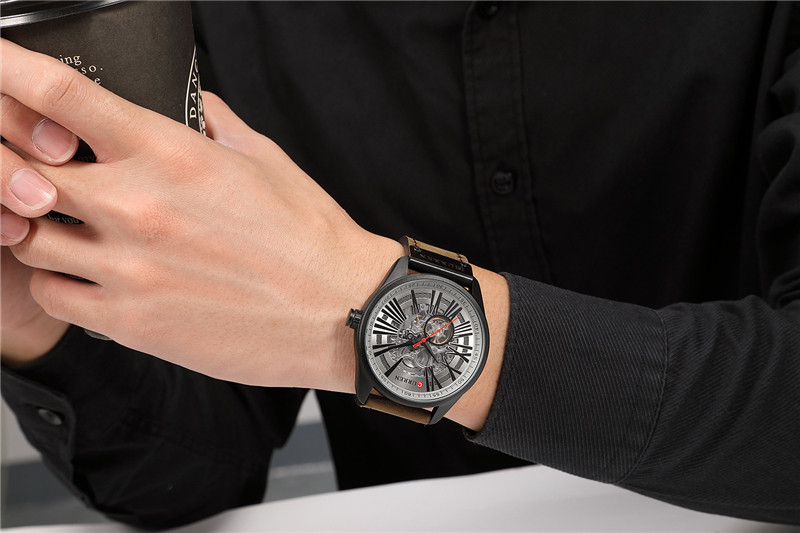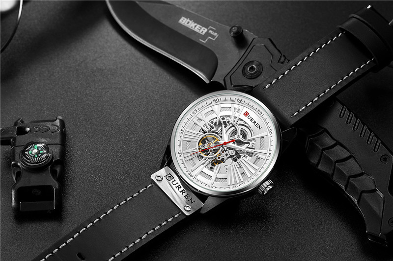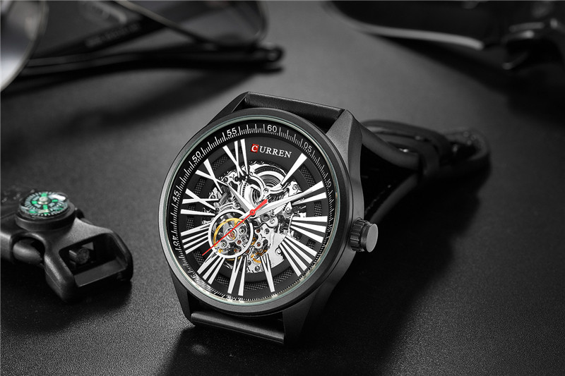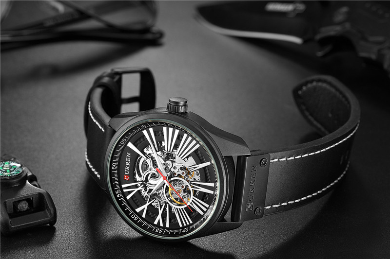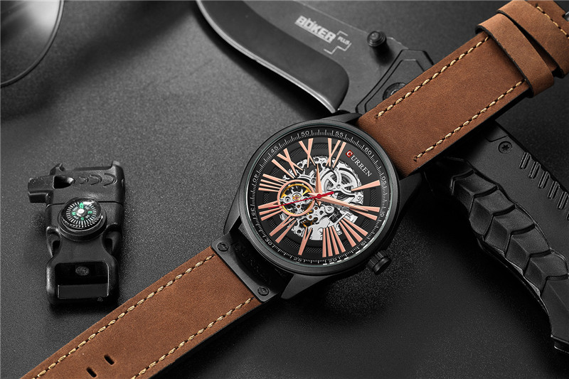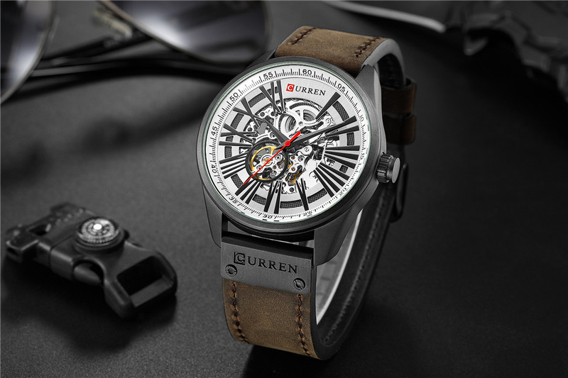 Трендовые водонепроницаемые модные механические швейцарские часы, полностью автоматический, из натуральной кожи