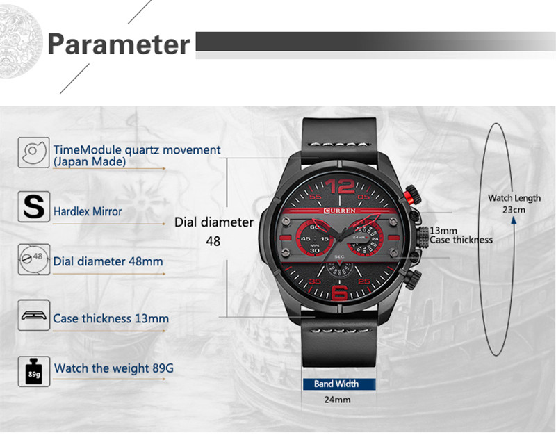 Curren Carehn Мужская хип -хоп повседневная сторона тенденция часа личные часы лучшие тенденции Таблица 8259