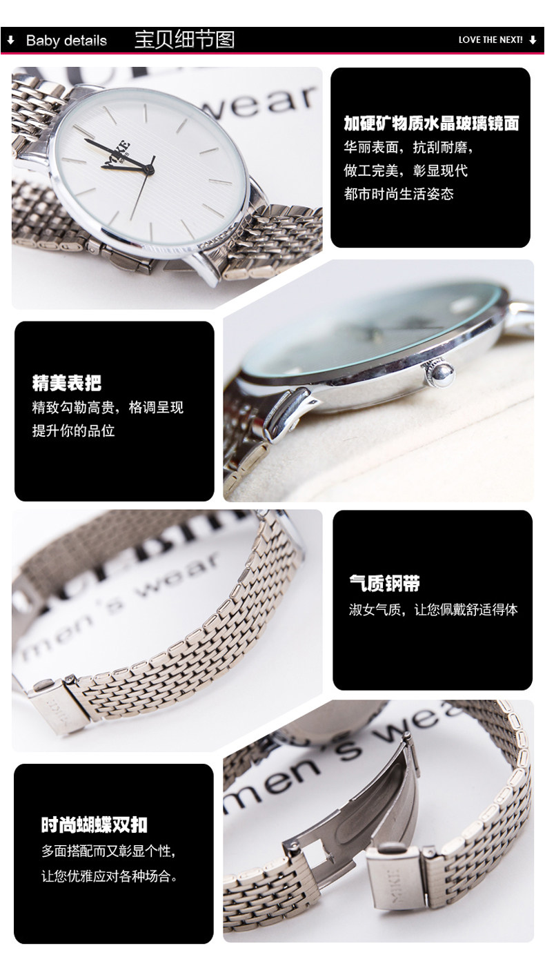 Мужские часы подходит для мужчин и женщин для влюбленных, ультратонкий водонепроницаемый стальной ремешок, механические брендовые трендовые механические часы для отдыха, в корейском стиле, простой и элегантный дизайн