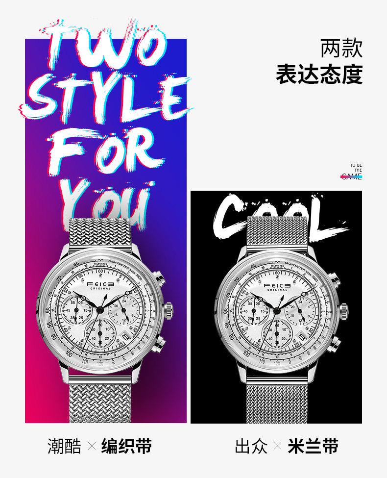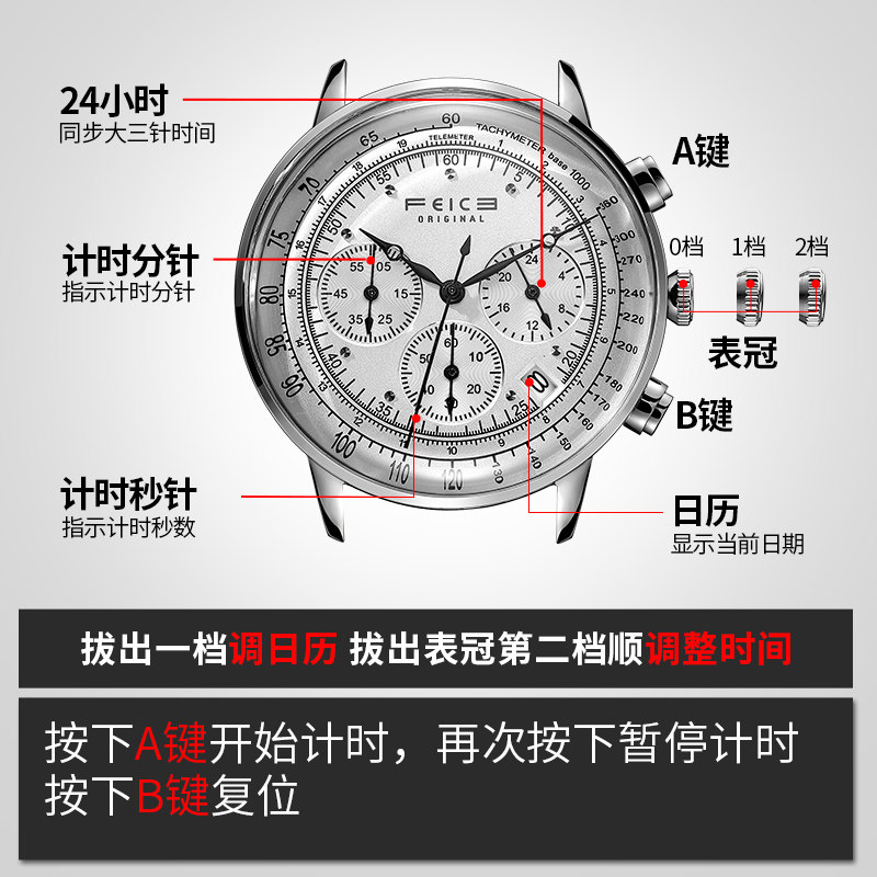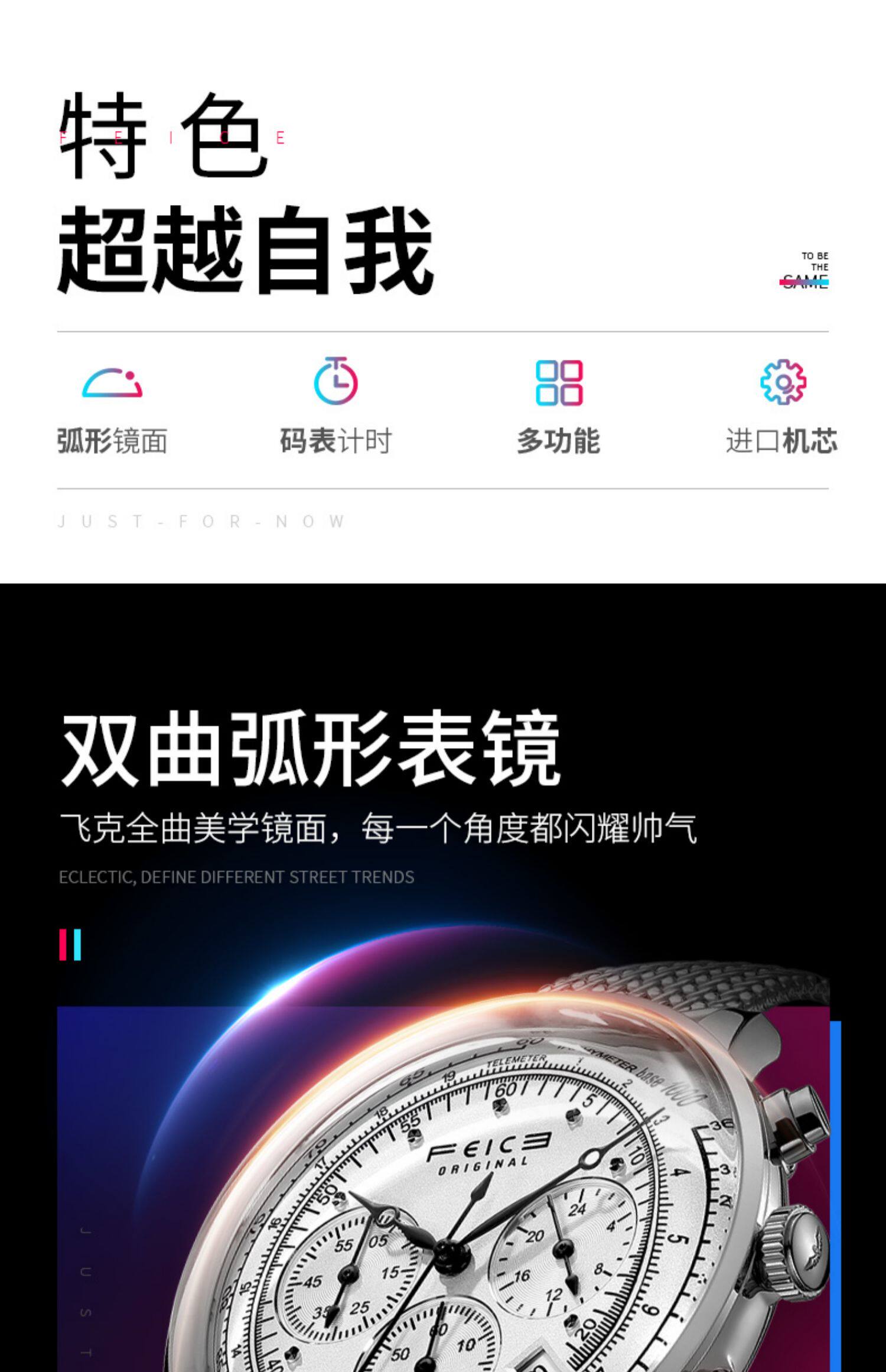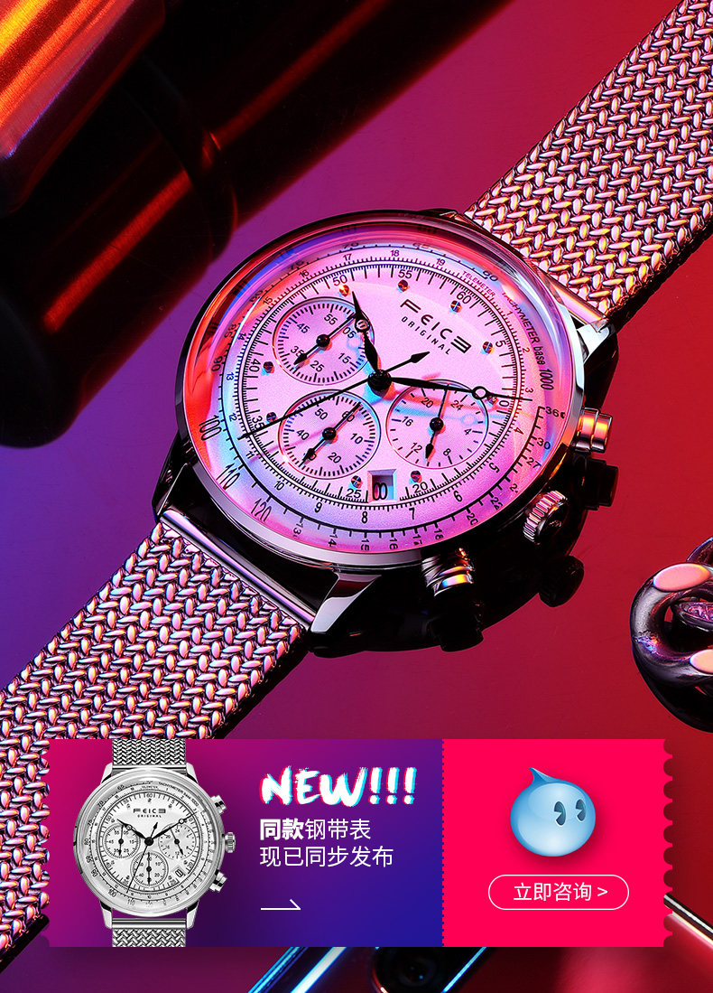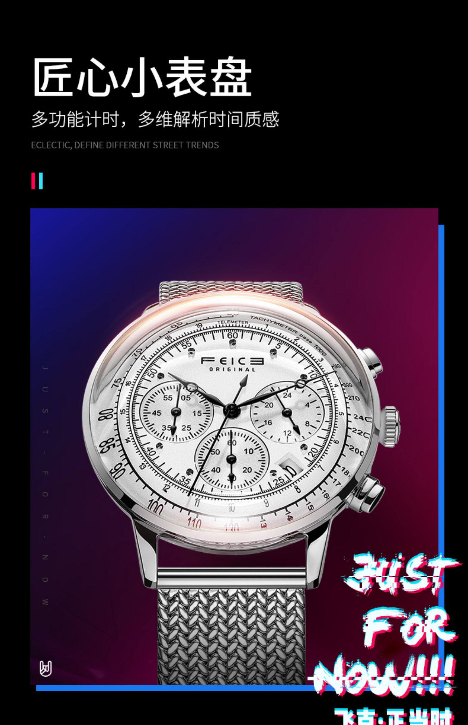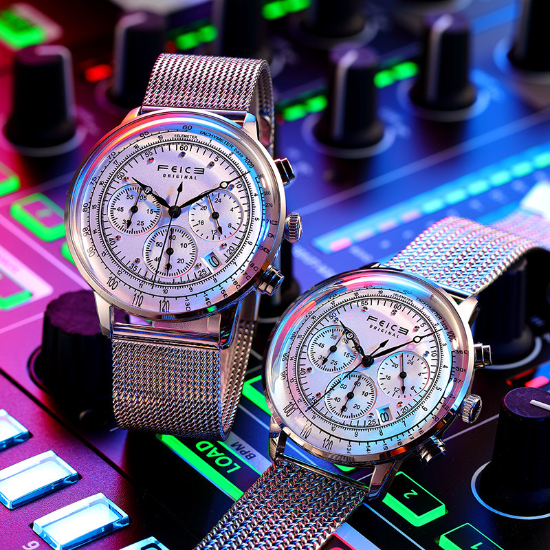 飞克 Трендовые швейцарские часы, мужские часы, универсальные кварцевые часы, водонепроницаемый стальной ремешок