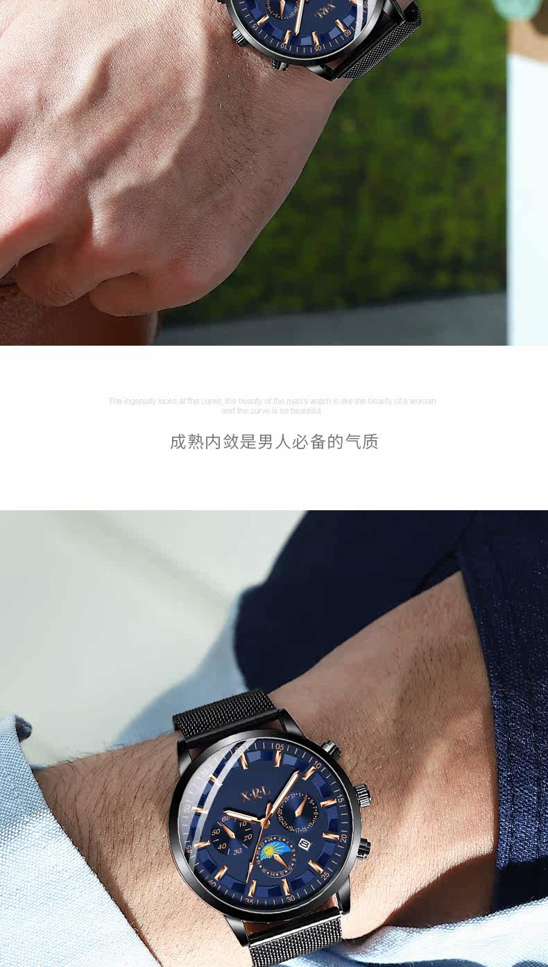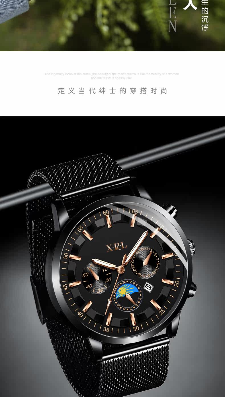 Мужские часы, мужской спортивный календарь, водонепроницаемые ультратонкие механические кварцевые часы, в корейском стиле