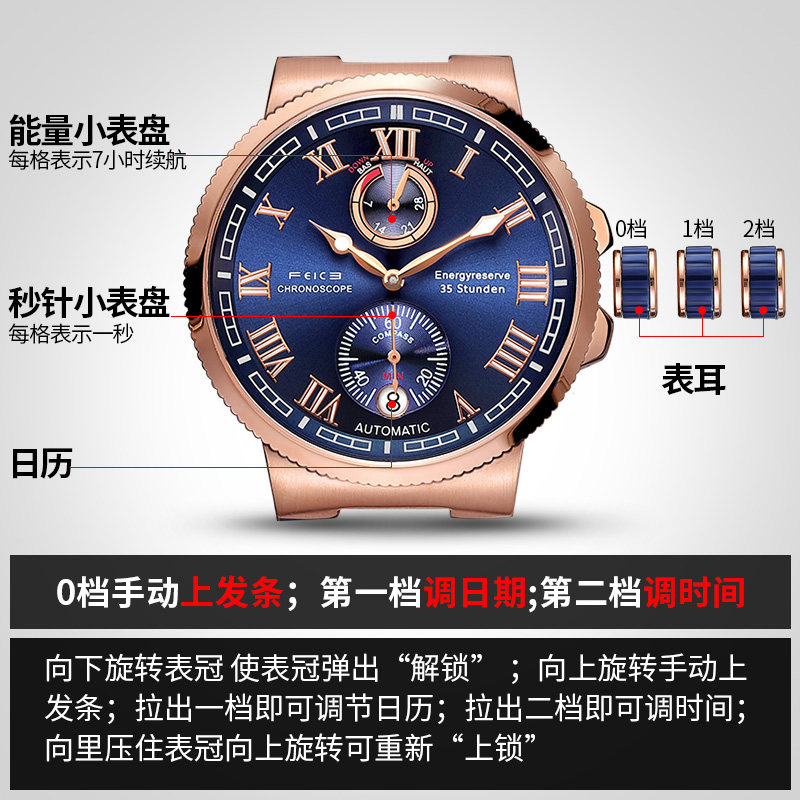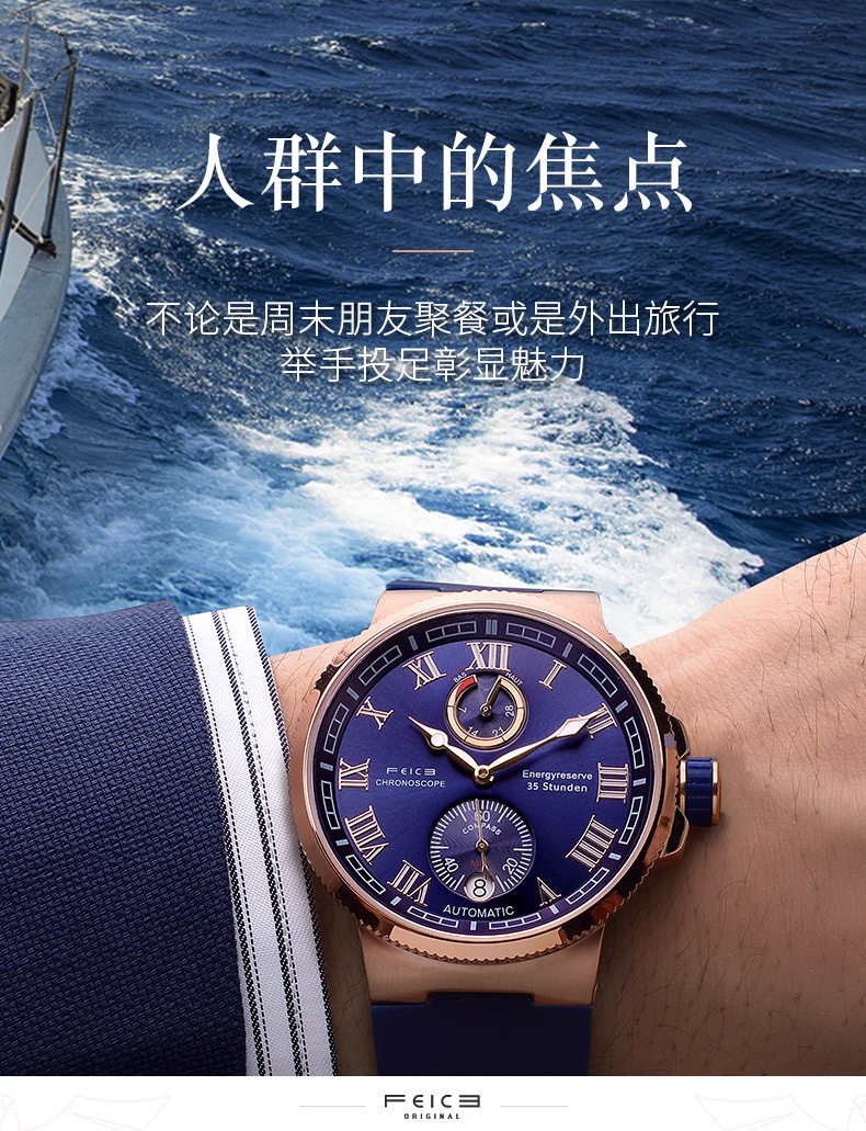 飞克 Швейцарские часы, ретро мужские часы, механические водонепроницаемые трендовые механические часы, полностью автоматический