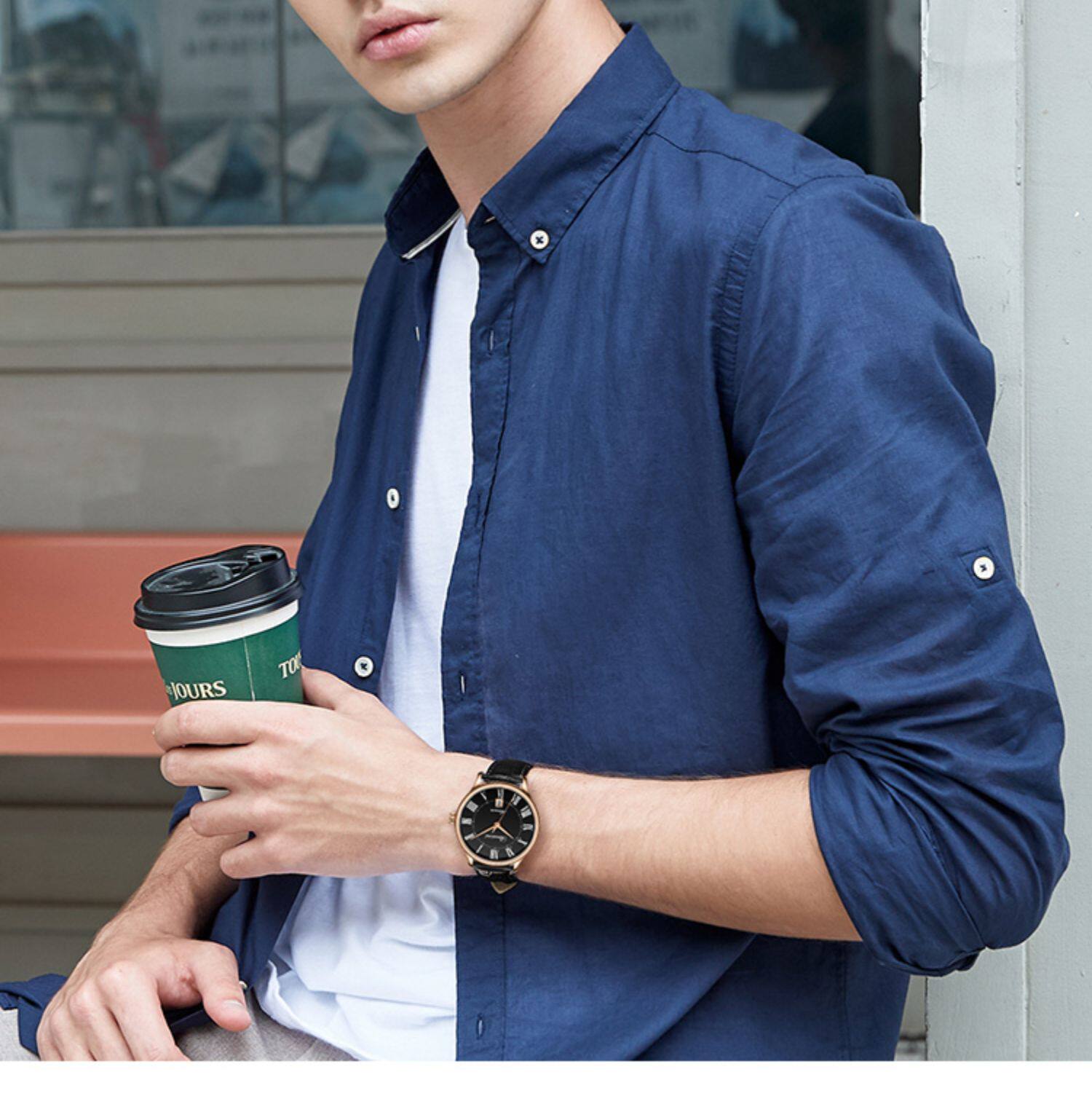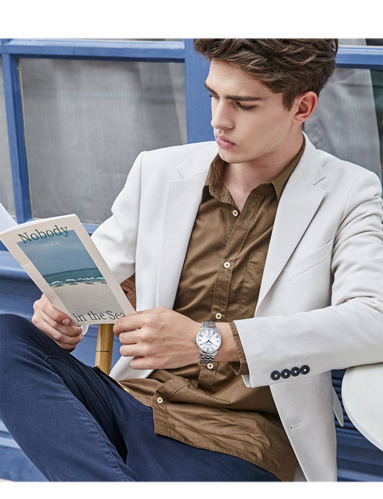 Водонепроницаемые механические мужские часы, простой и элегантный дизайн