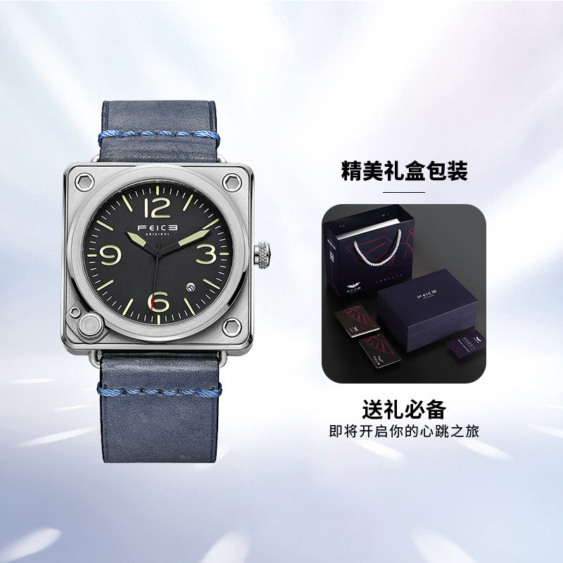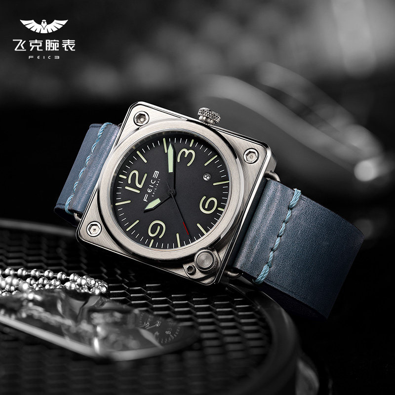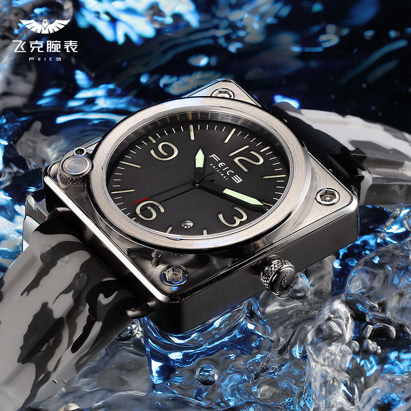 飞克 Мужской квадратный циферблат, механические швейцарские часы, мужские часы, водонепроницаемые механические часы