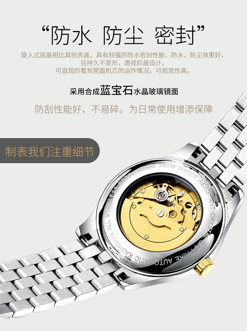 卡诗顿 Водонепроницаемые швейцарские часы, механические механические часы, ремень из нержавеющей стали, мужские часы, полностью автоматический