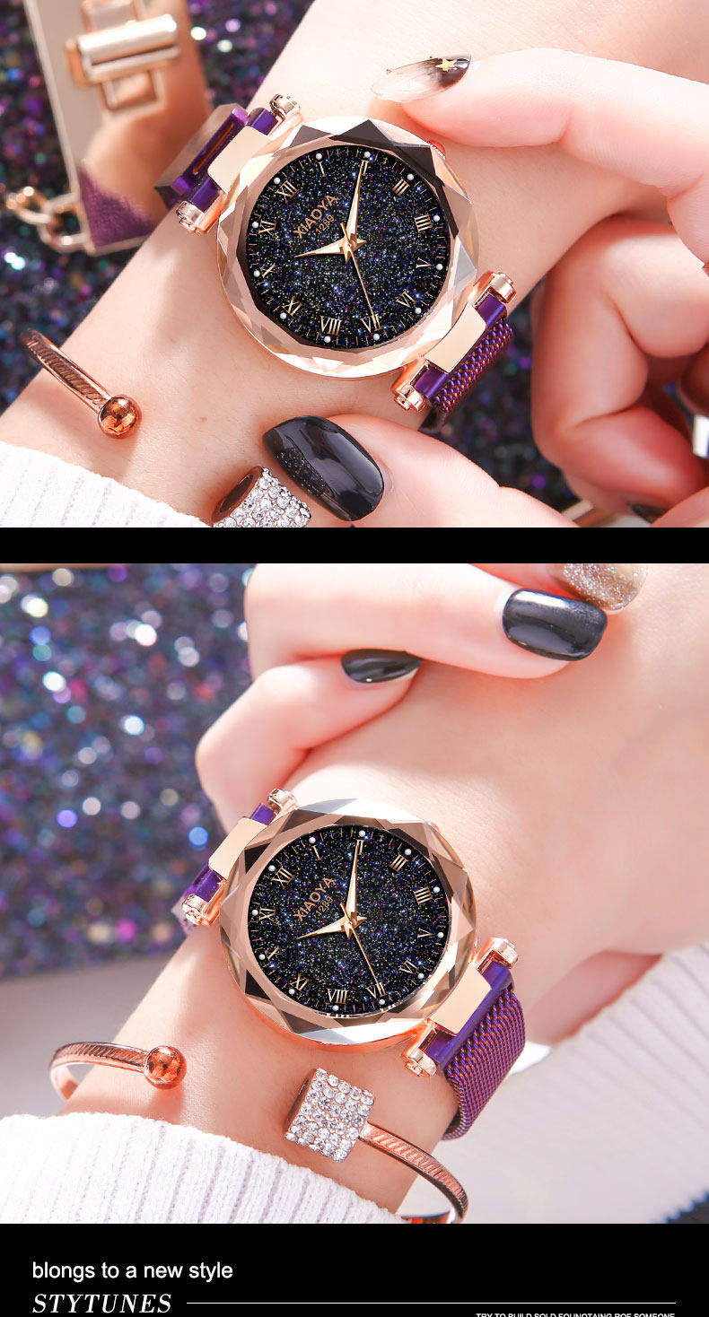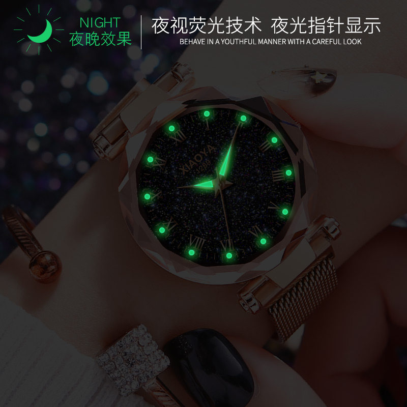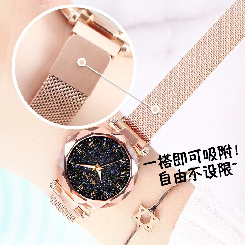TikTok, женские часы для школьников, модное трендовое водонепроницаемое кварцевое звездное небо для отдыха, в корейском стиле, простой и элегантный дизайн, популярно в интернете, городской стиль