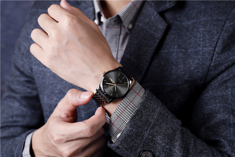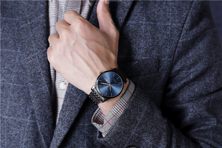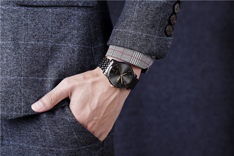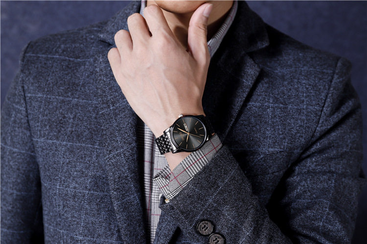 Ультратонкий модный механический стальной ремешок из нержавеющей стали, кварцевые часы, водонепроницаемые швейцарские часы