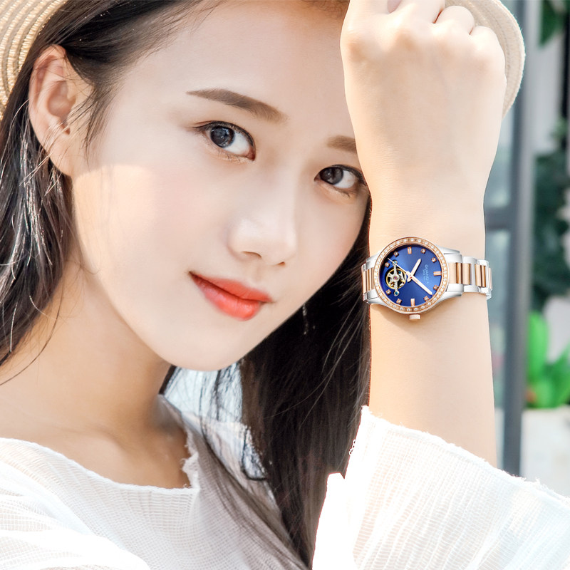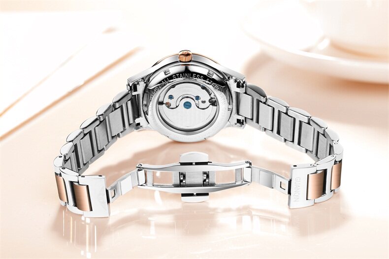 Механические механические часы, водонепроницаемый модный стальной ремешок для влюбленных из нержавеющей стали, женские часы, полностью автоматический