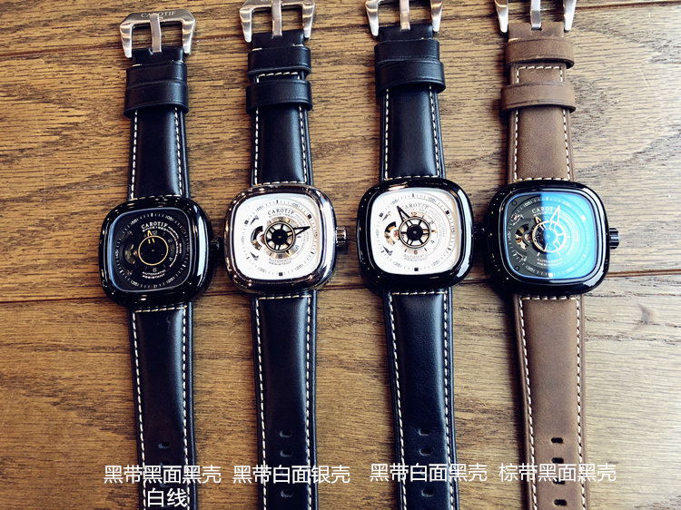 Квадратная -форма полностью автоматические механические часы Полая нижняя крышка