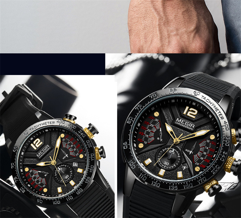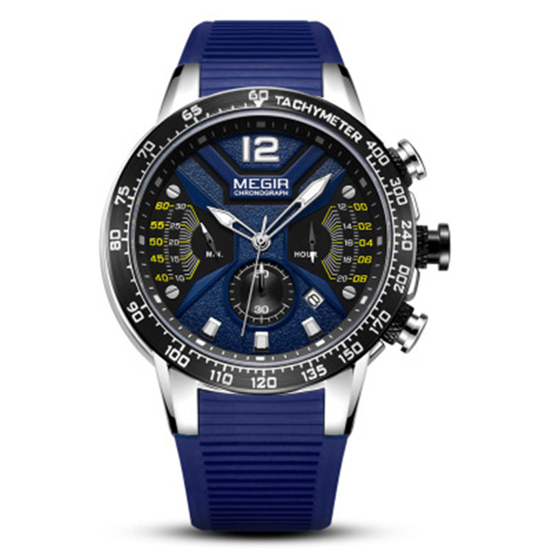 MEGIR Super Time Movement Watch Multi -точковое прилив персонализированные мужские часы водонепроницаемые пластиковые часы