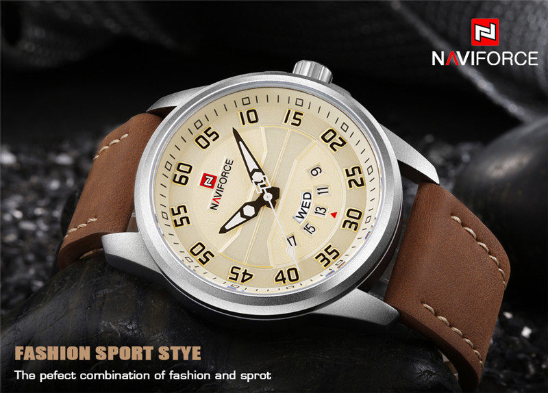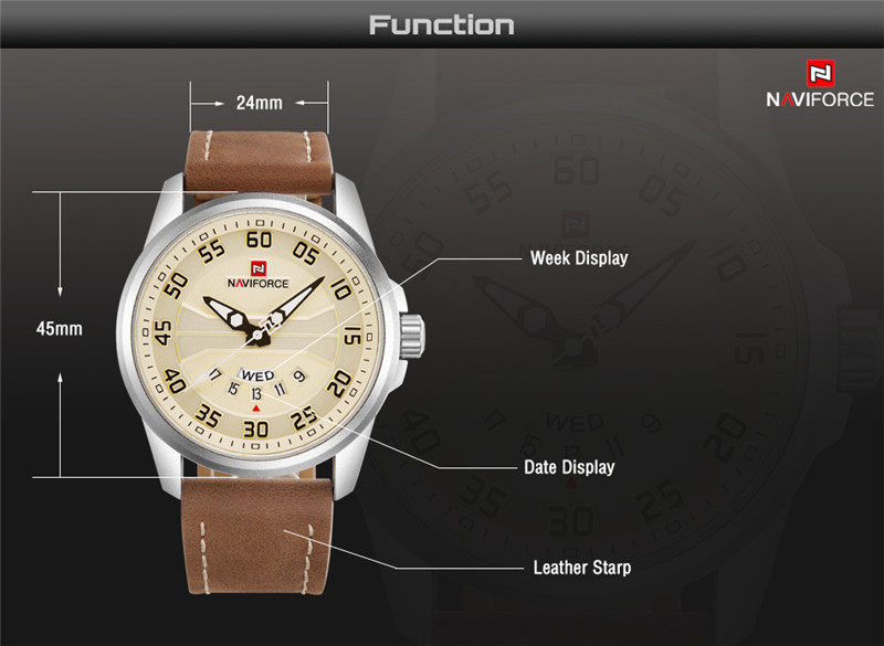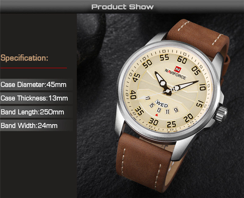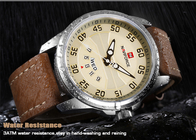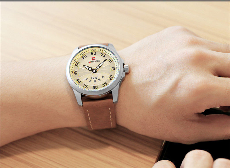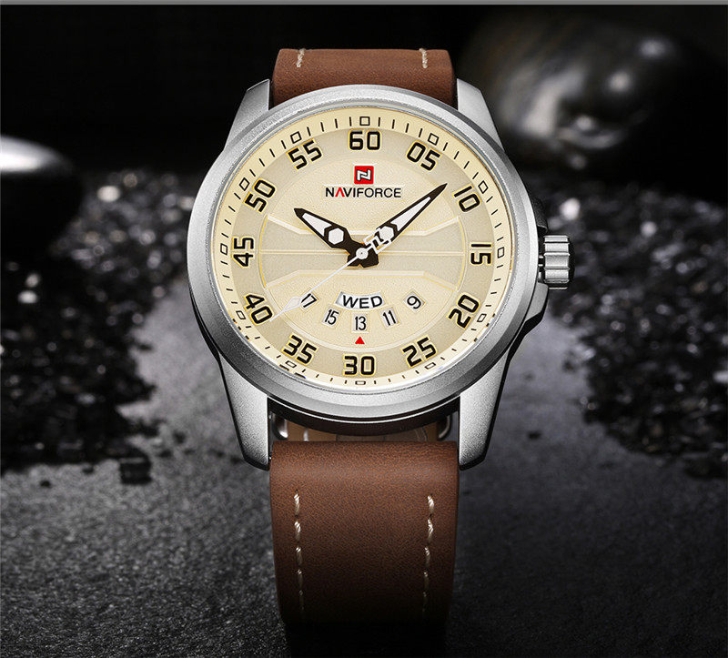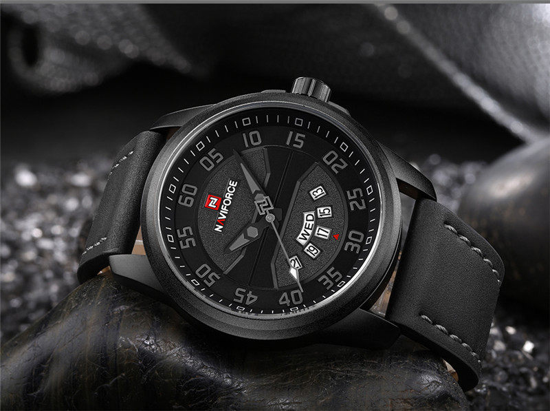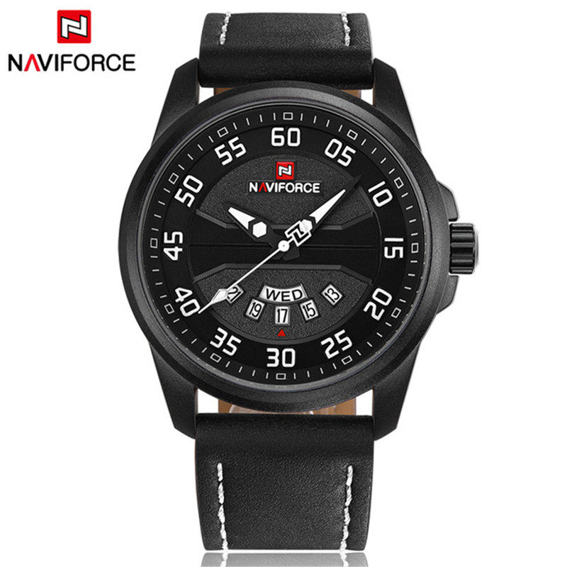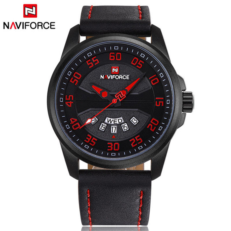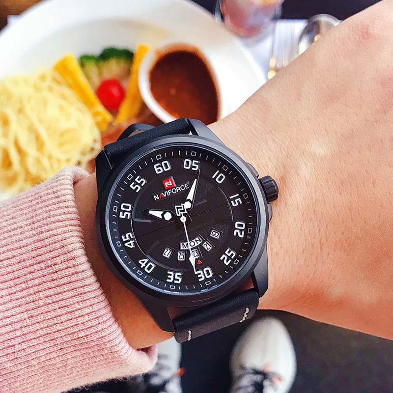Naviforce Watch Men's Double -недельная кожаная водонепроницаемость 9124