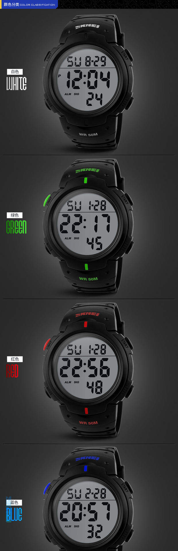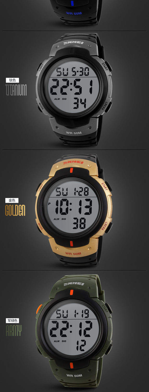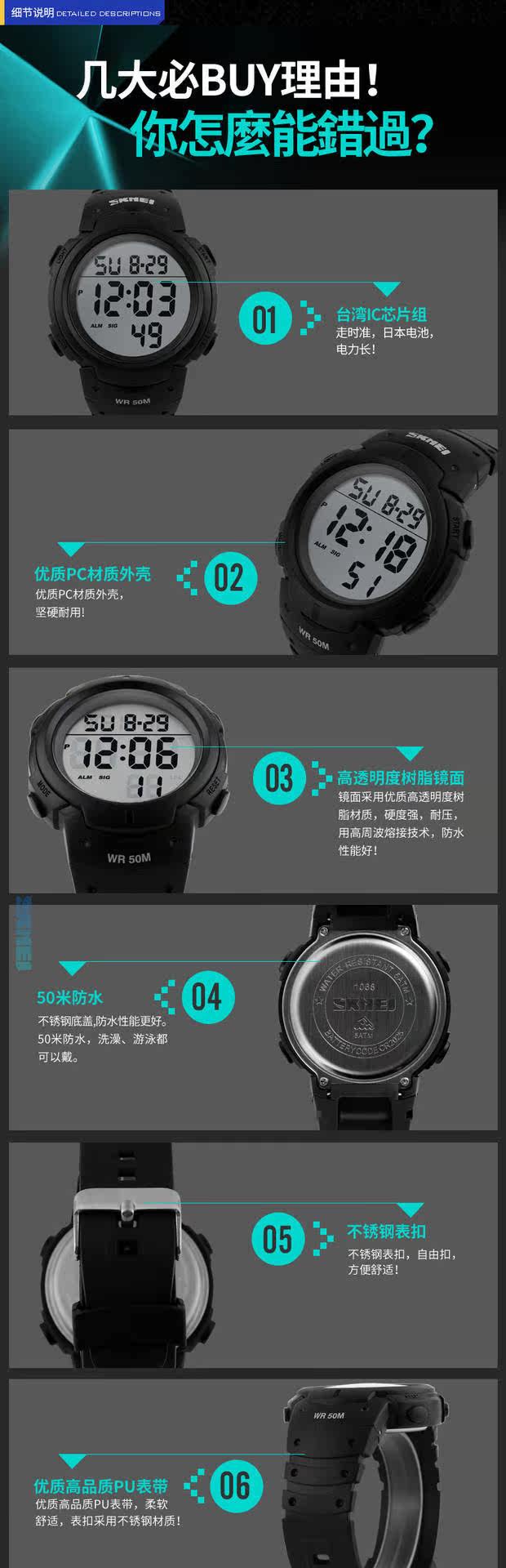 Skmei Deep Waterpronation Training Training Watch Light Screen Luminous Sports Watch Professional Professional Trining Triming Table 1068