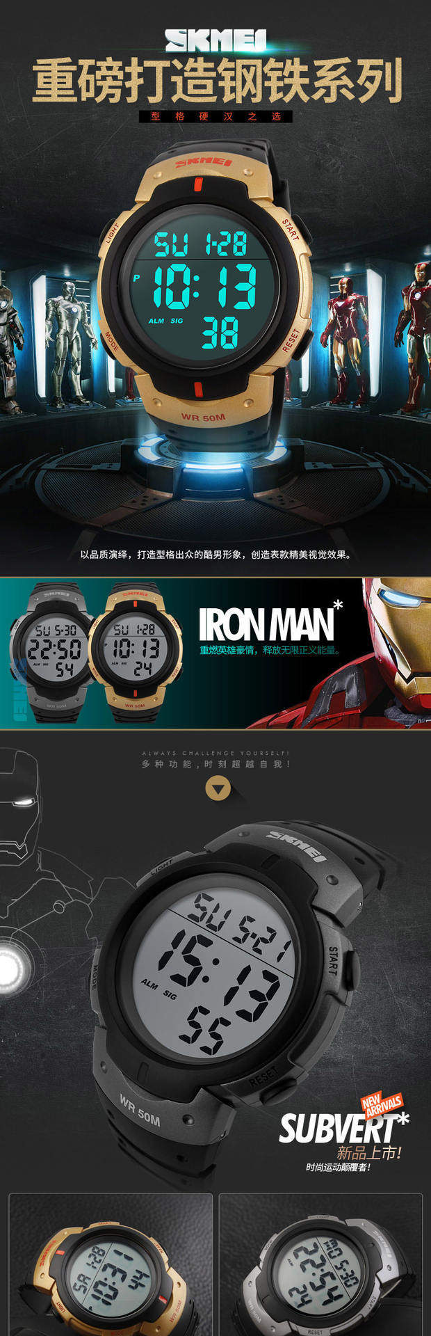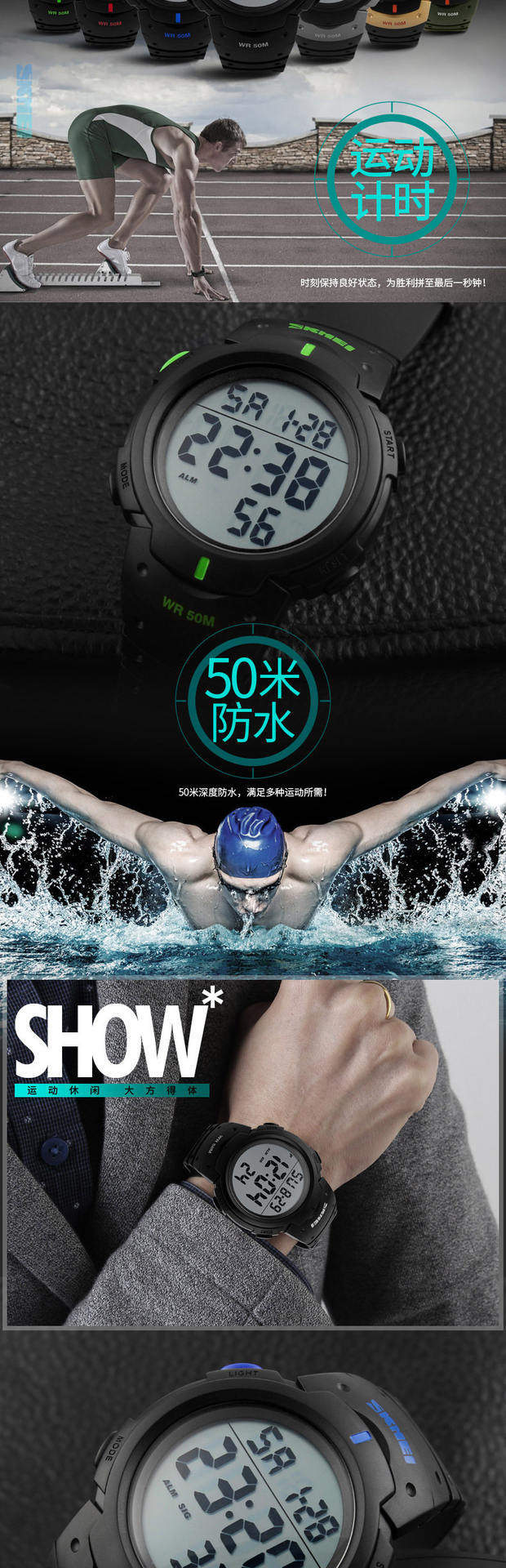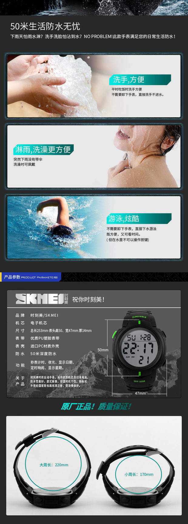 Skmei Deep Waterpronation Training Training Watch Light Screen Luminous Sports Watch Professional Professional Trining Triming Table 1068
