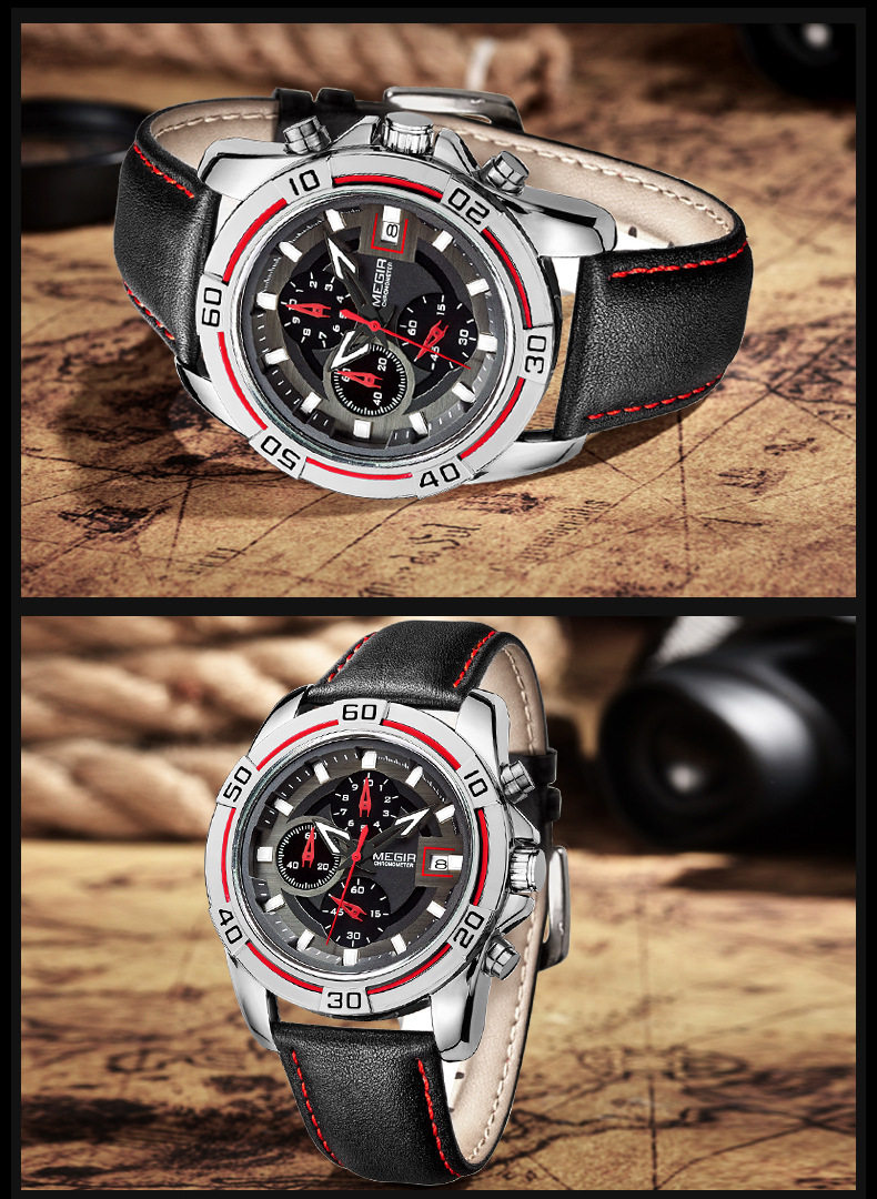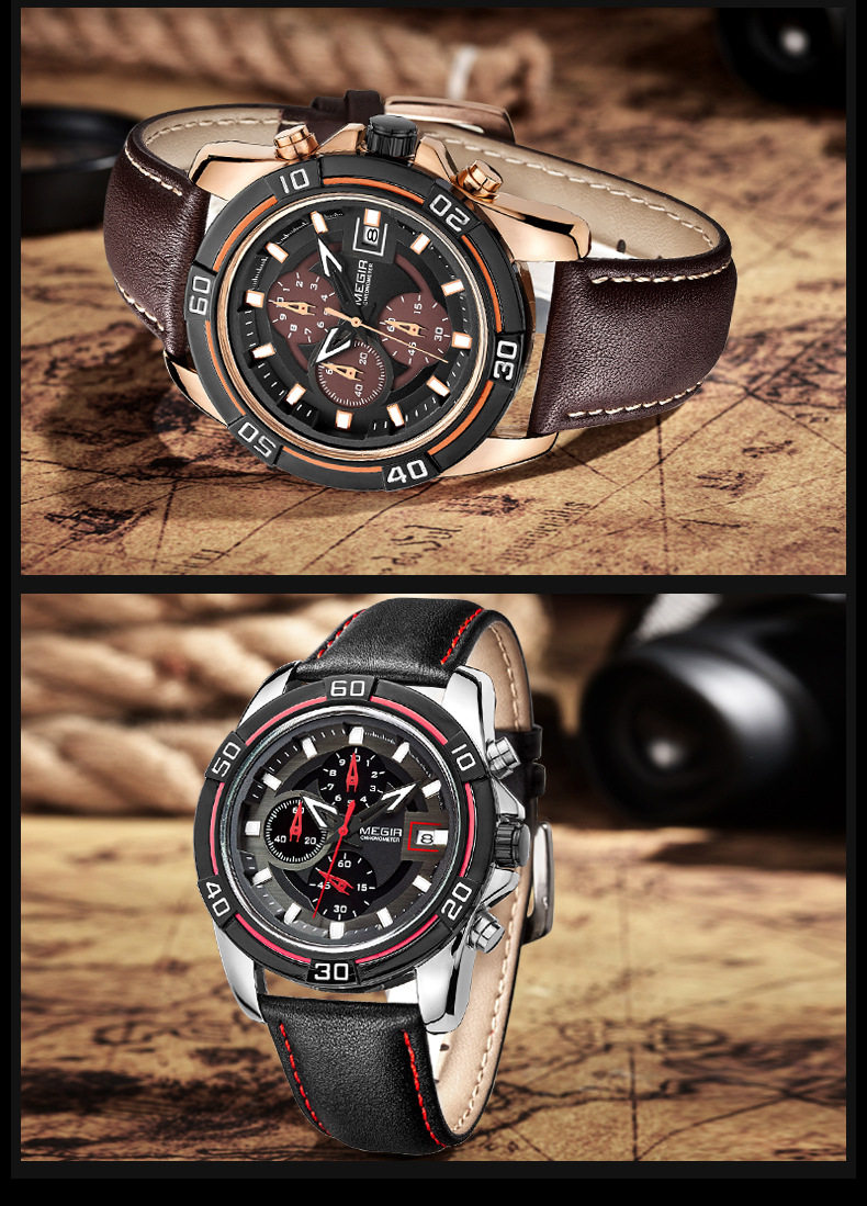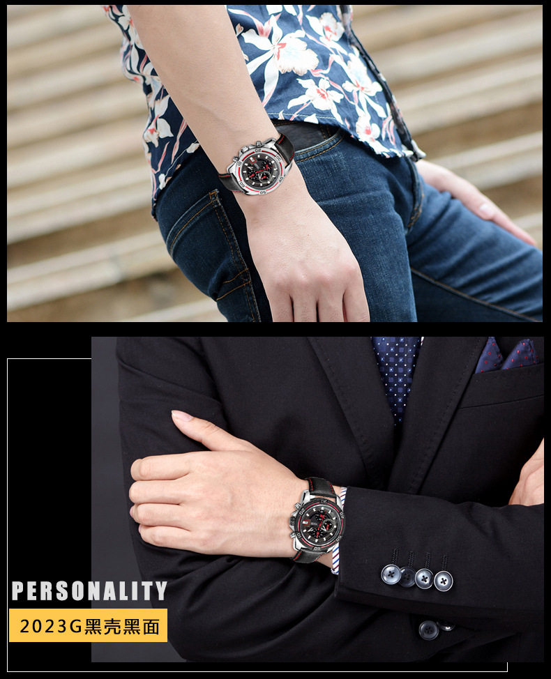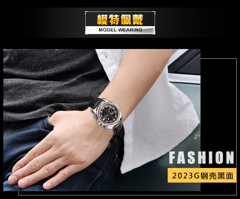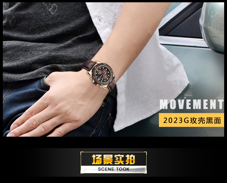 Кварцевые водонепроницаемые мужские часы, кварцевый механизм, из натуральной кожи, 2023