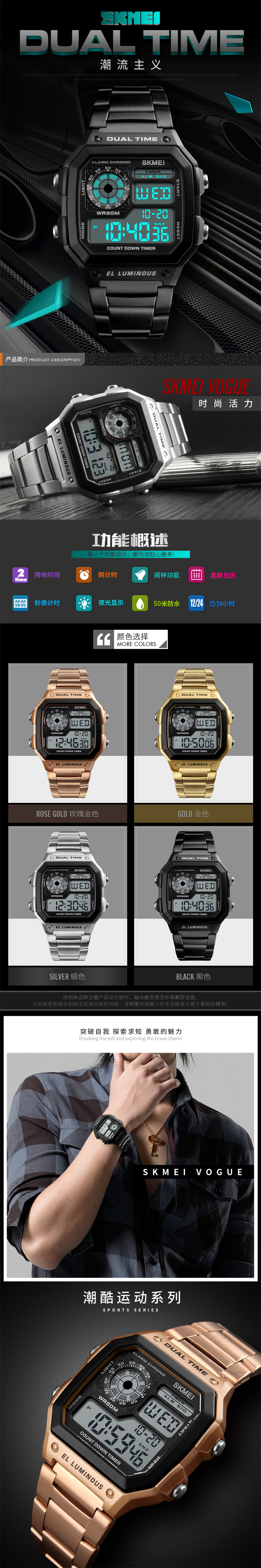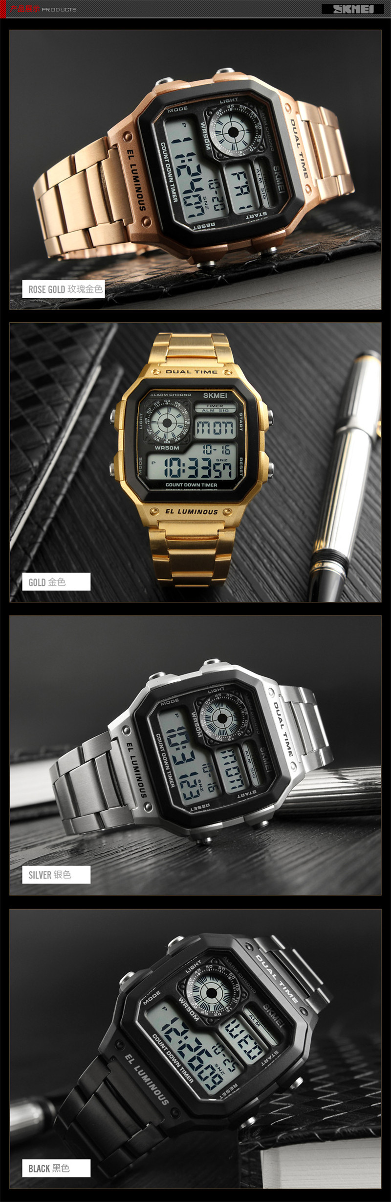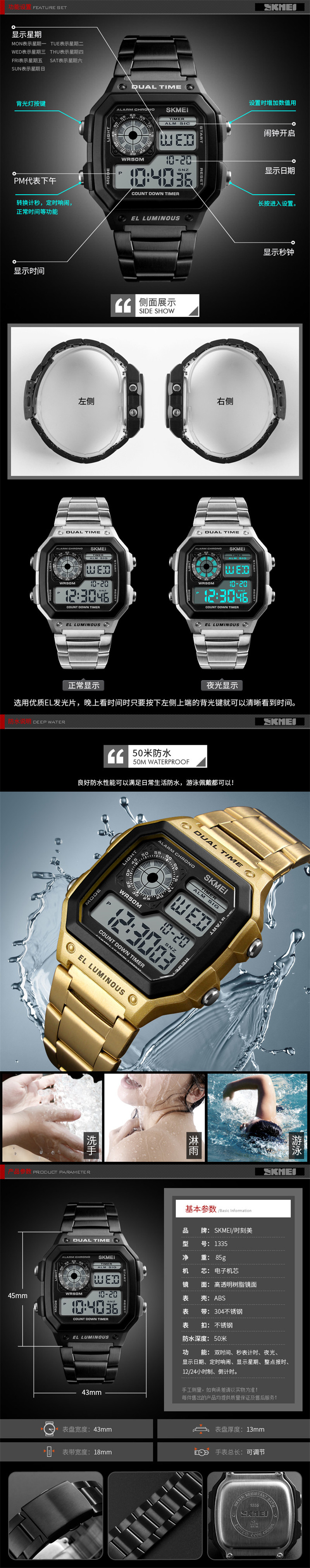 Трендовые золотые часы в стиле хип-хоп, водонепроницаемые мужские часы, цифровые часы, европейский стиль