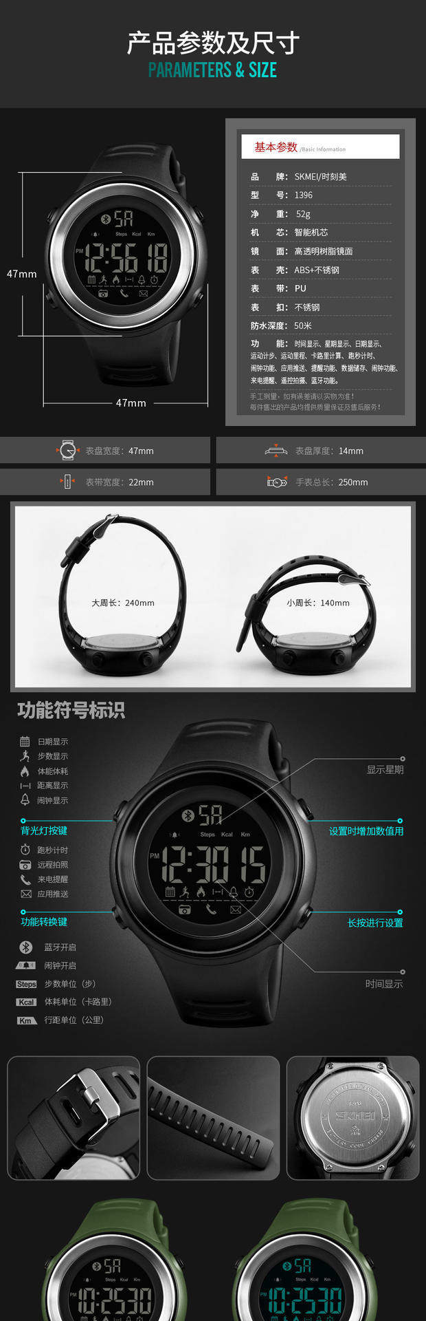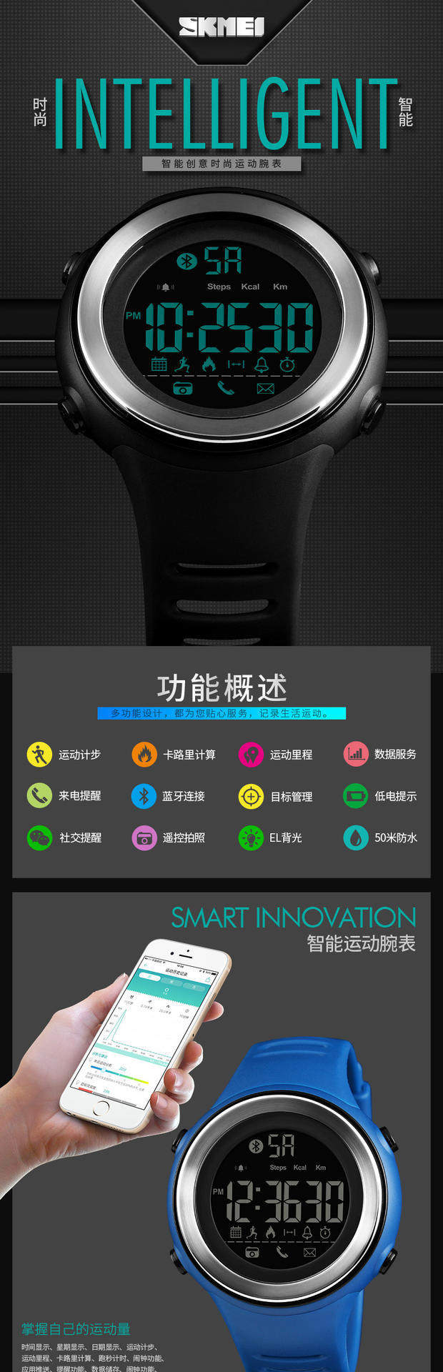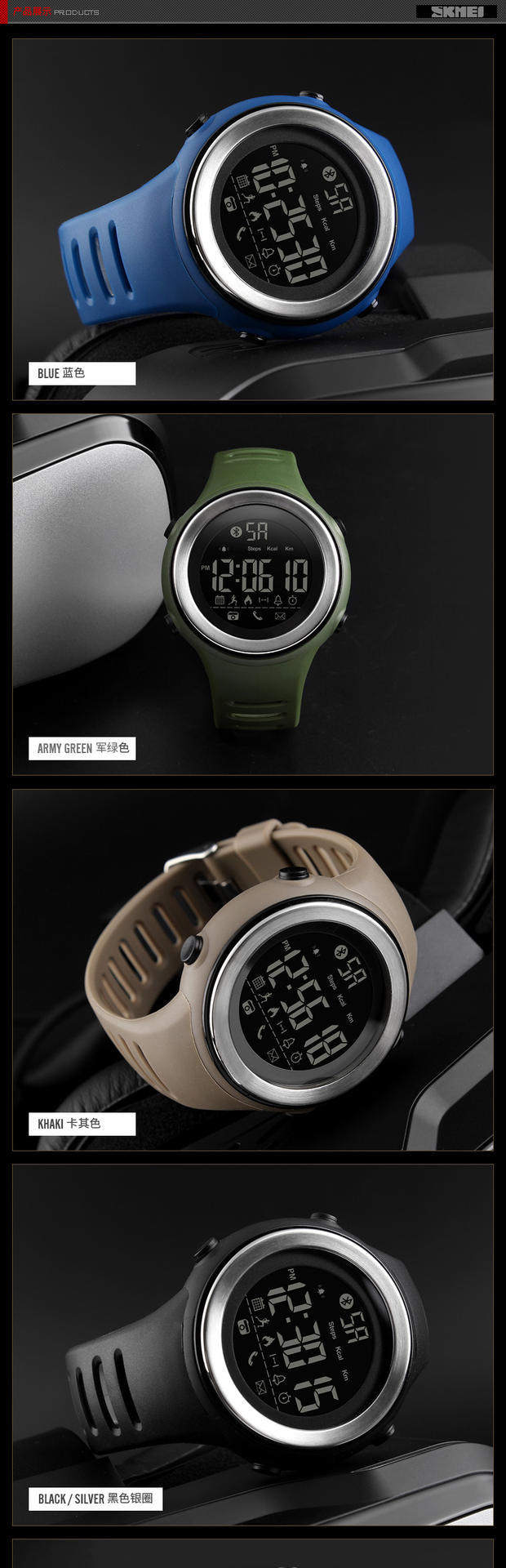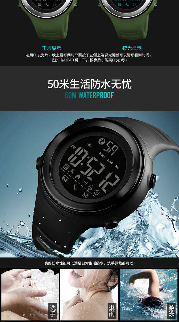 Skmei There Time Smart Watch Watch Waterpronation Surgeagulation Professional Training Watch Male Nights Light 1396
