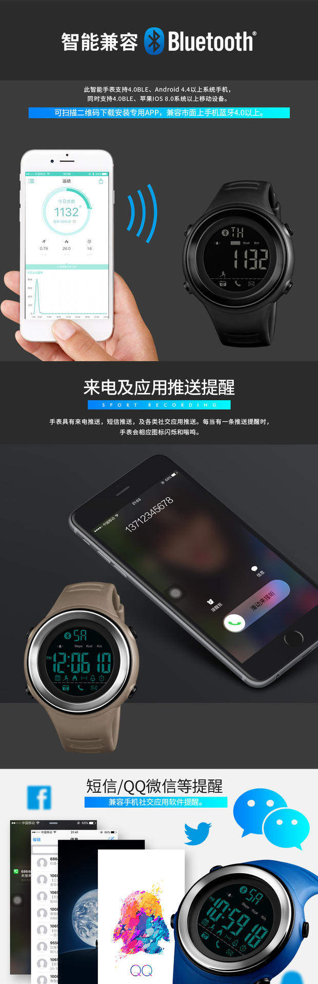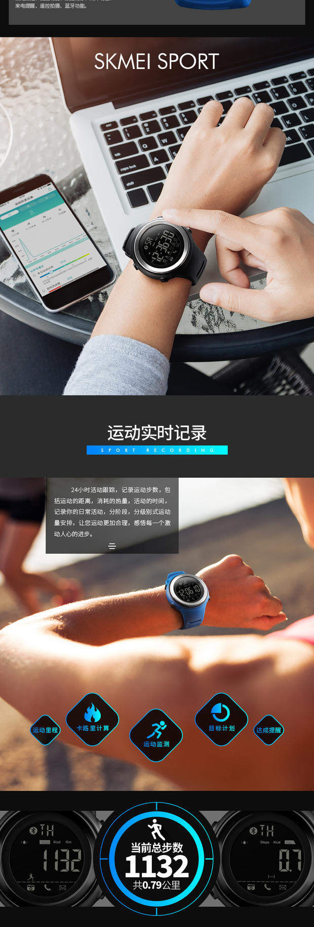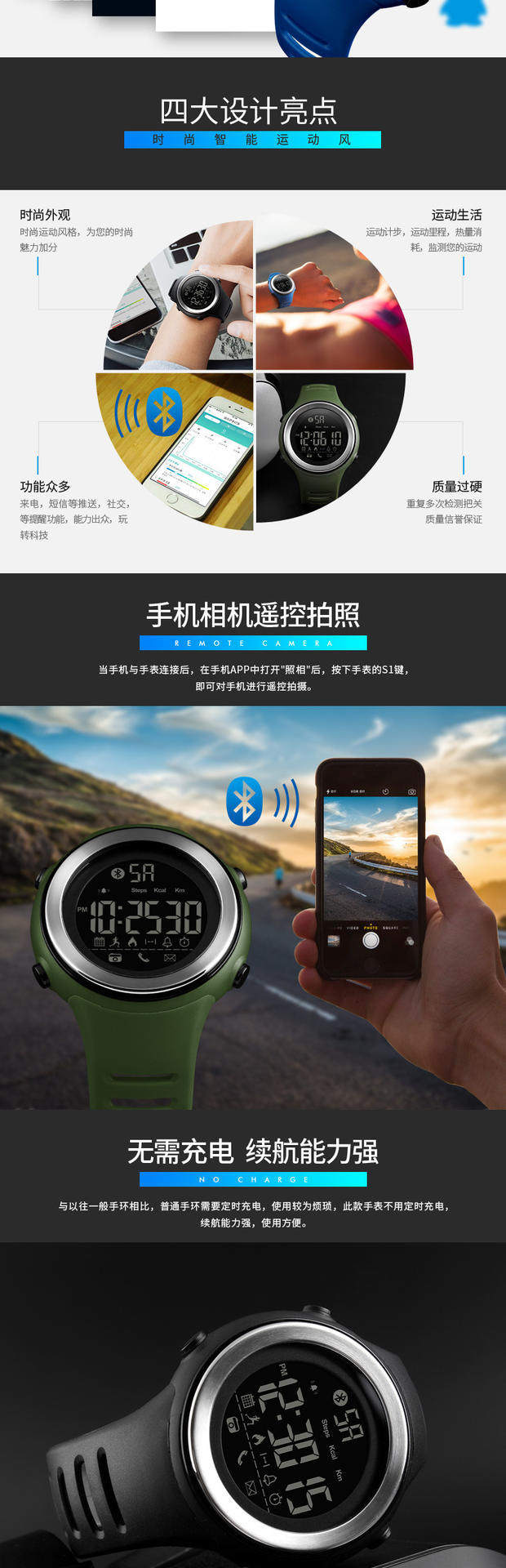 Skmei There Time Smart Watch Watch Waterpronation Surgeagulation Professional Training Watch Male Nights Light 1396