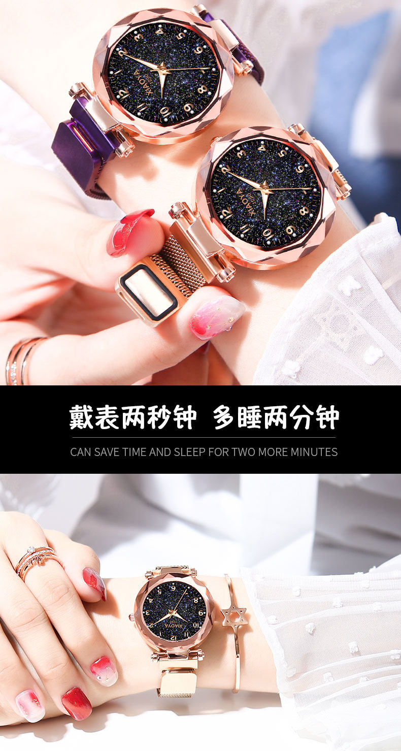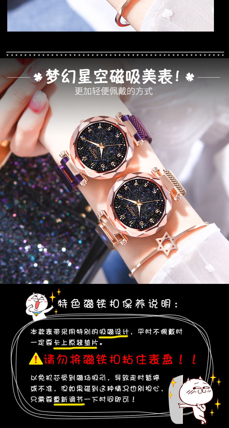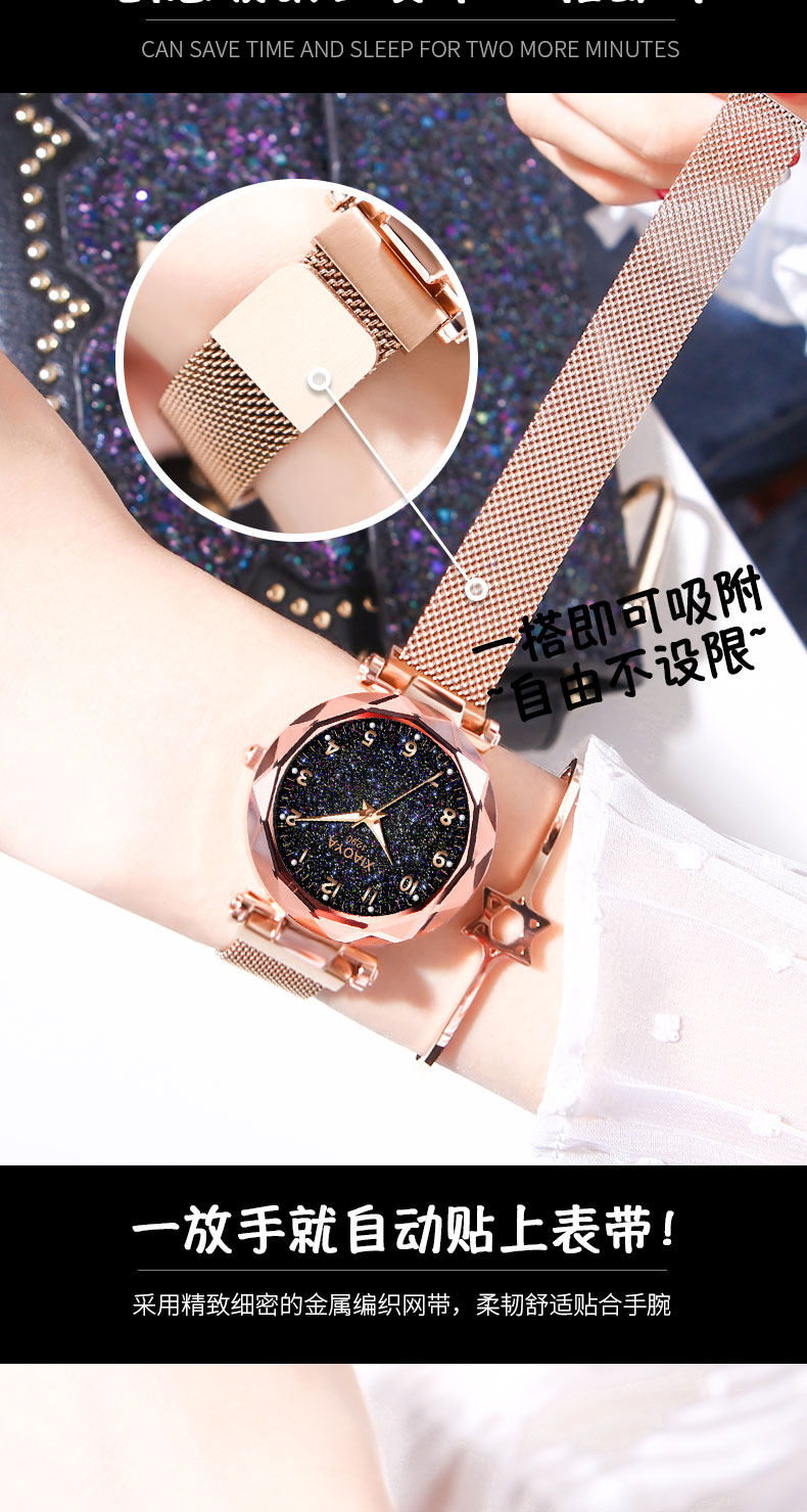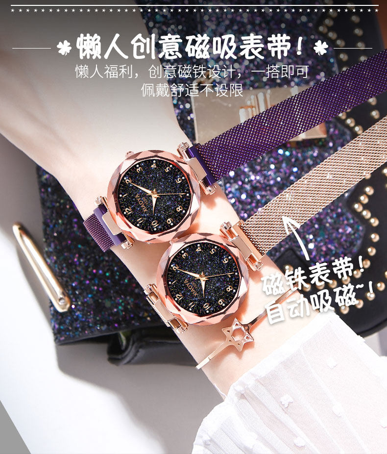 TikTok, брендовое звездное небо для школьников, магнитные водонепроницаемые механические механические часы, простой и элегантный дизайн