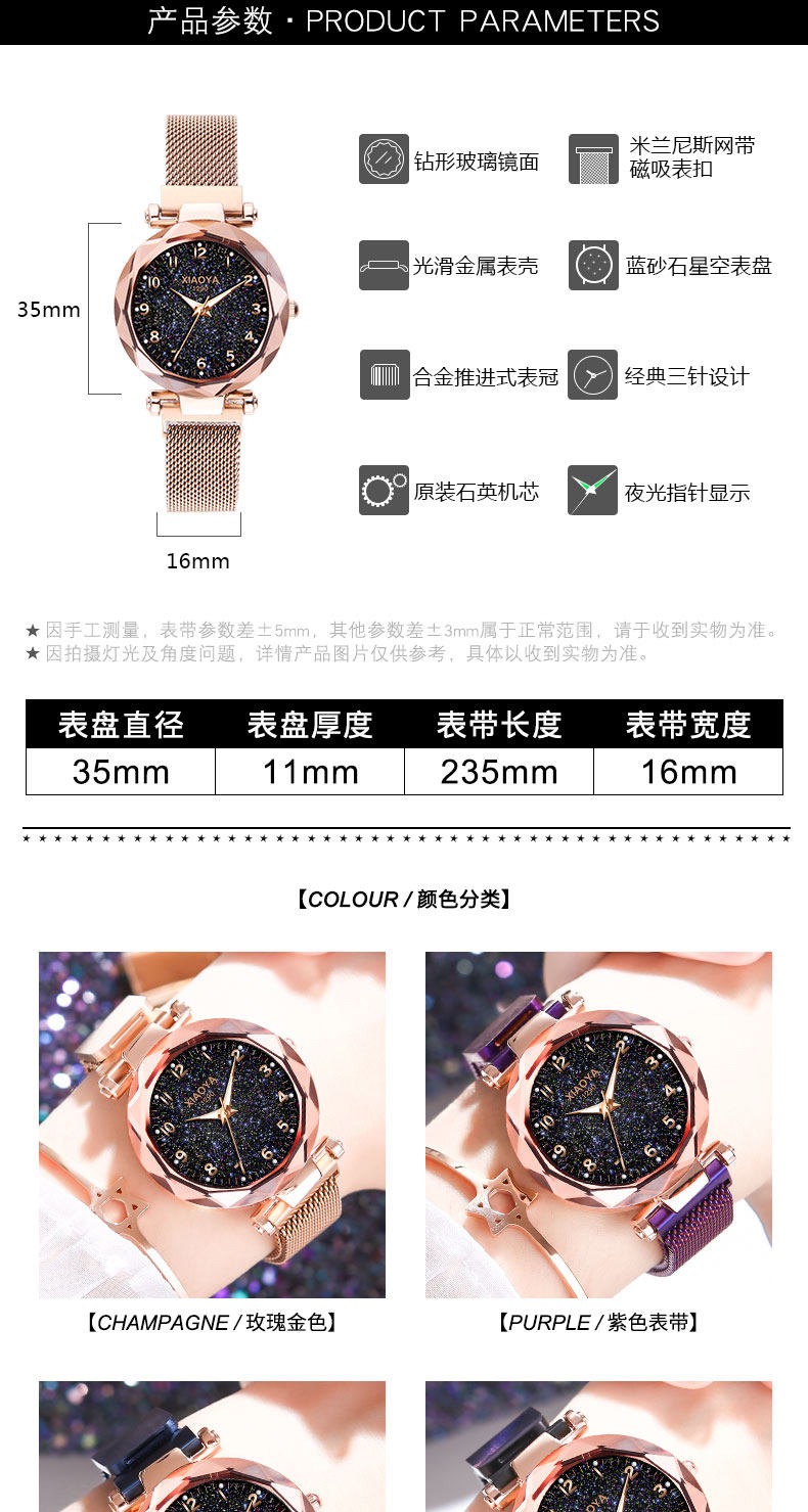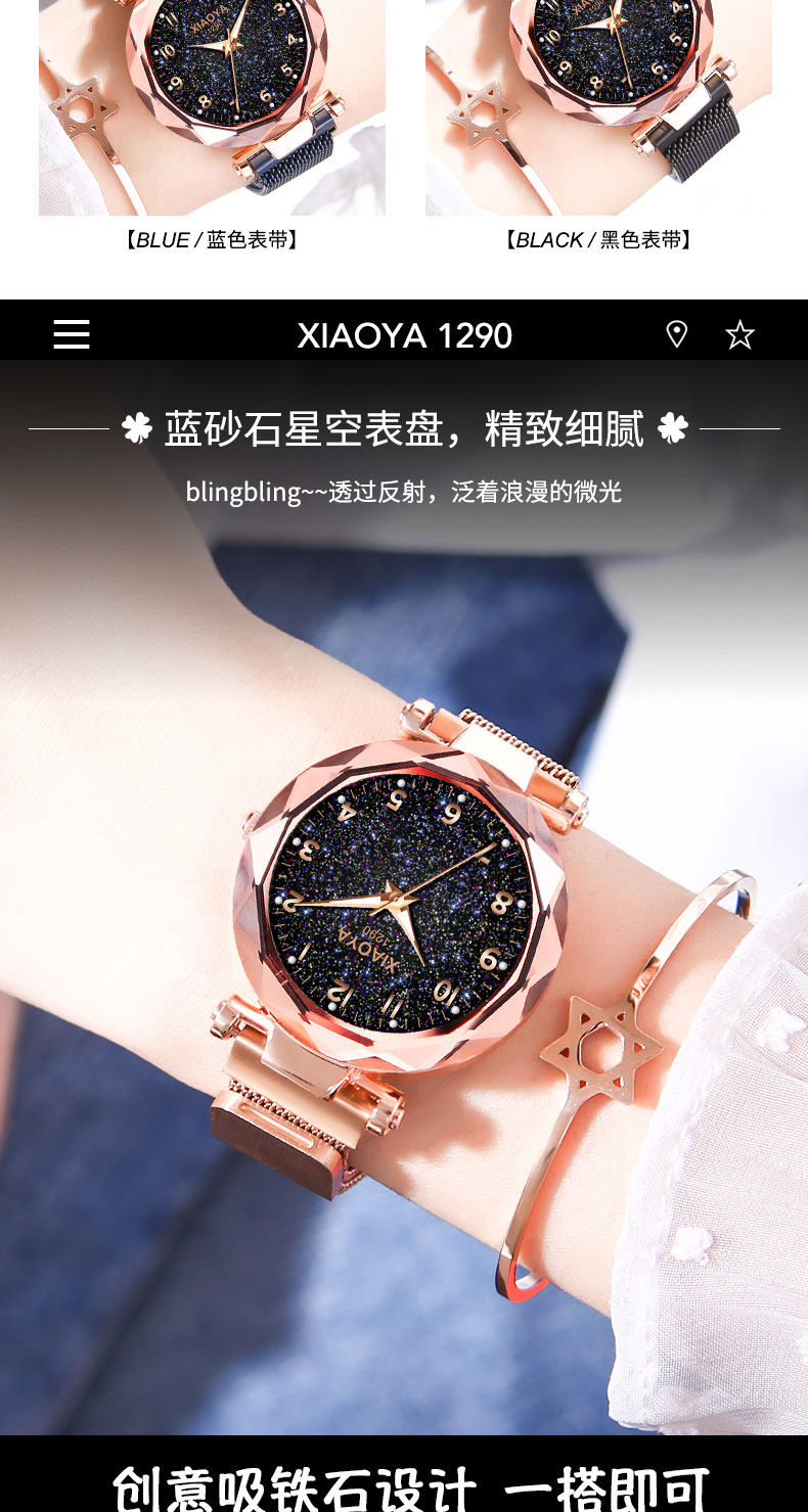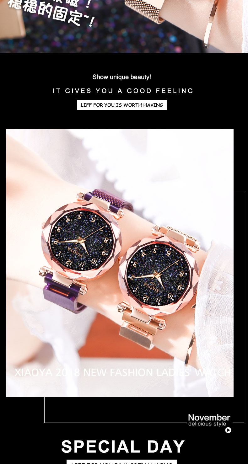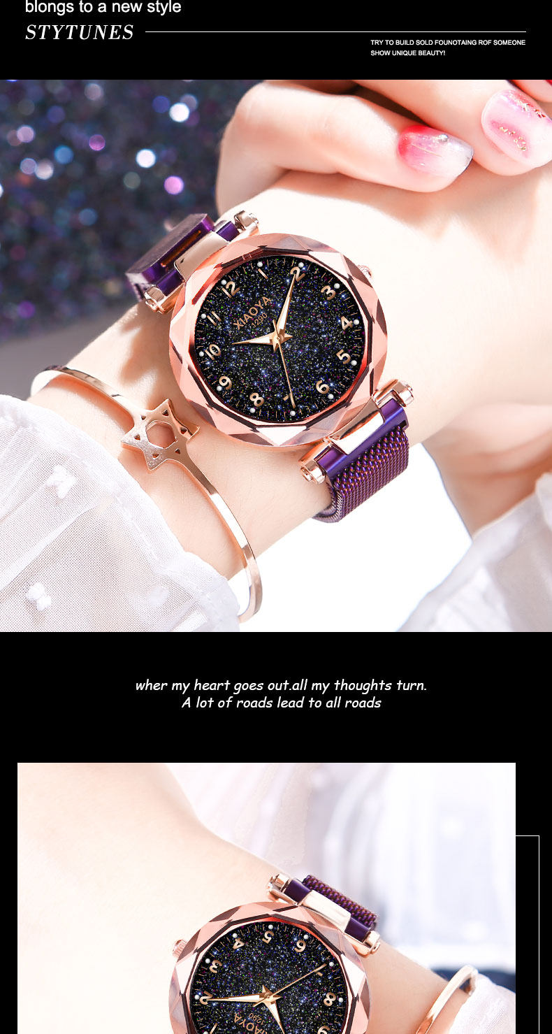 TikTok, брендовое звездное небо для школьников, магнитные водонепроницаемые механические механические часы, простой и элегантный дизайн