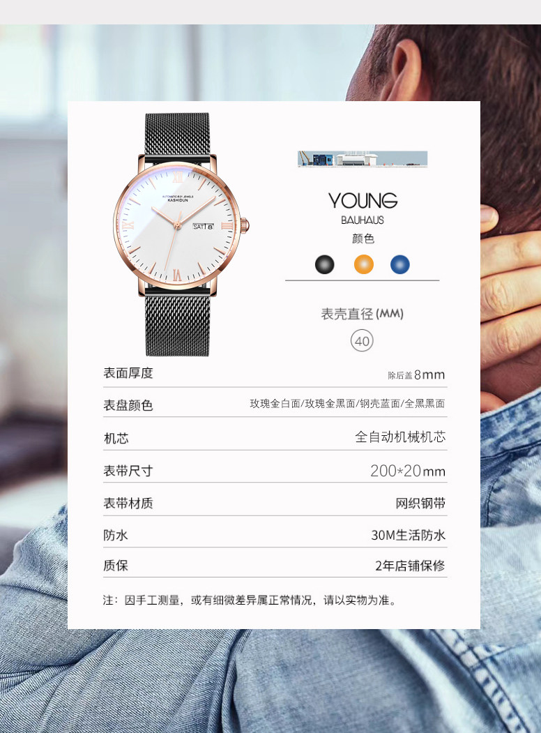 卡诗顿 Механические мужские часы, водонепроницаемые модные трендовые механические часы, полностью автоматический, простой и элегантный дизайн, 2019