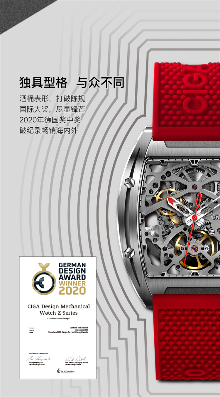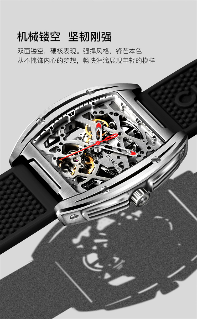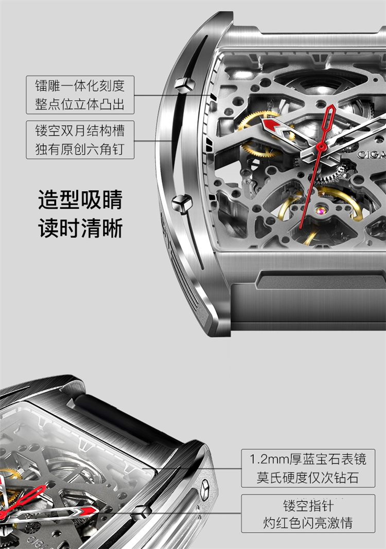 CIGA Design Xijia Z Series Watch Barrel -Type -Type Double -Sided Hollow Automatic Automatic Mechanical Watch Watch