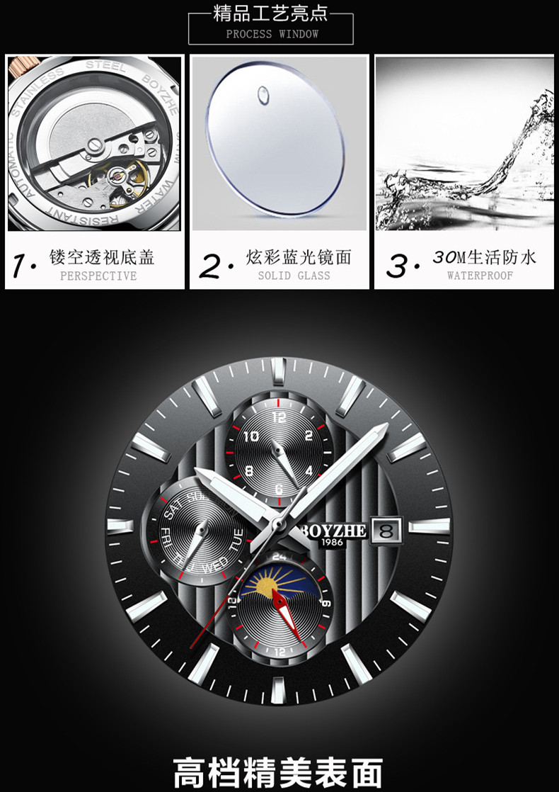 Импортные мужские часы, механические универсальные водонепроницаемые механические часы, Швейцария, полностью автоматический