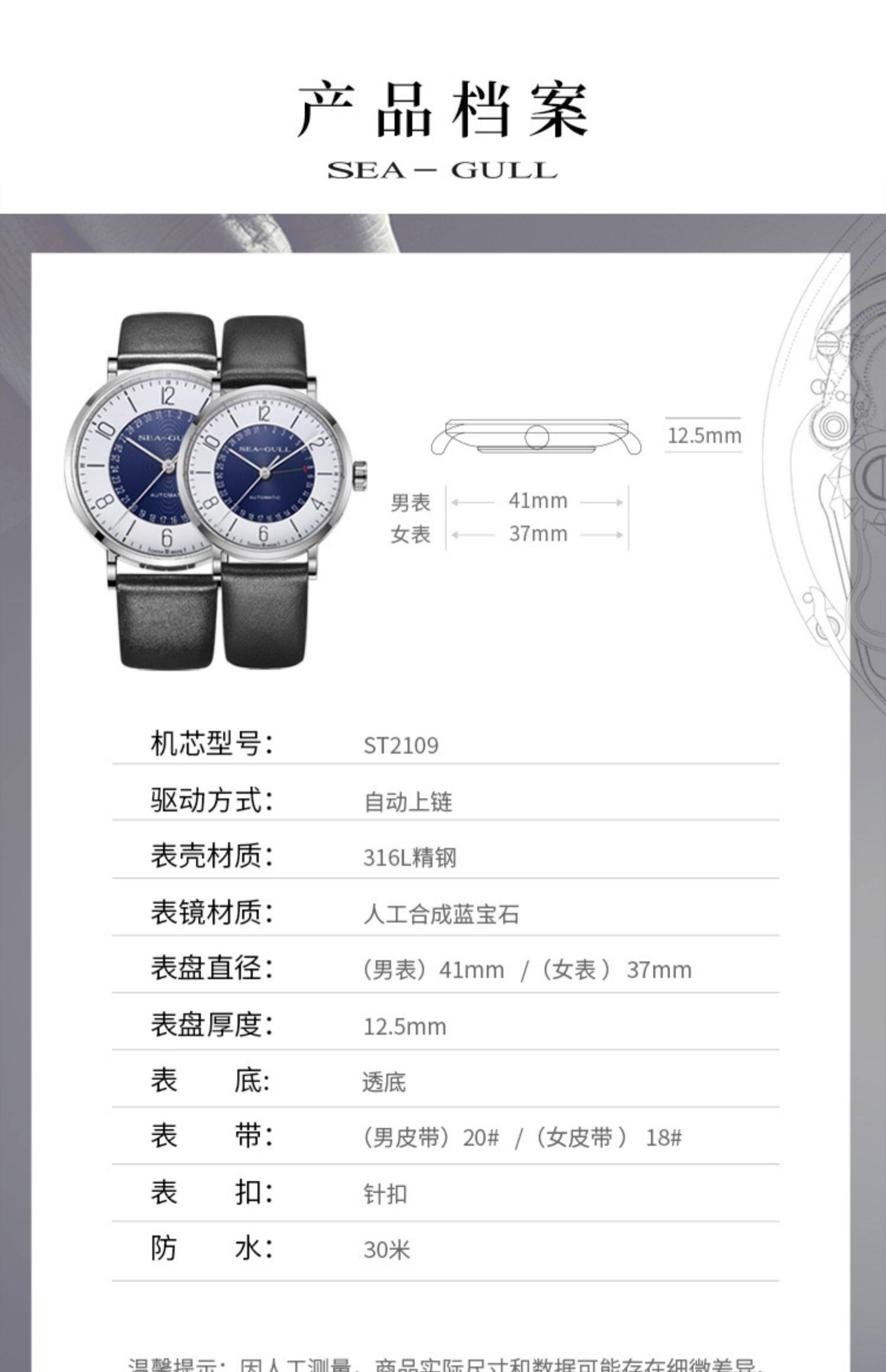Seagull Seagull Watch Мужские автоматические механические часы Женщина -вода. Год национальных серий пар
