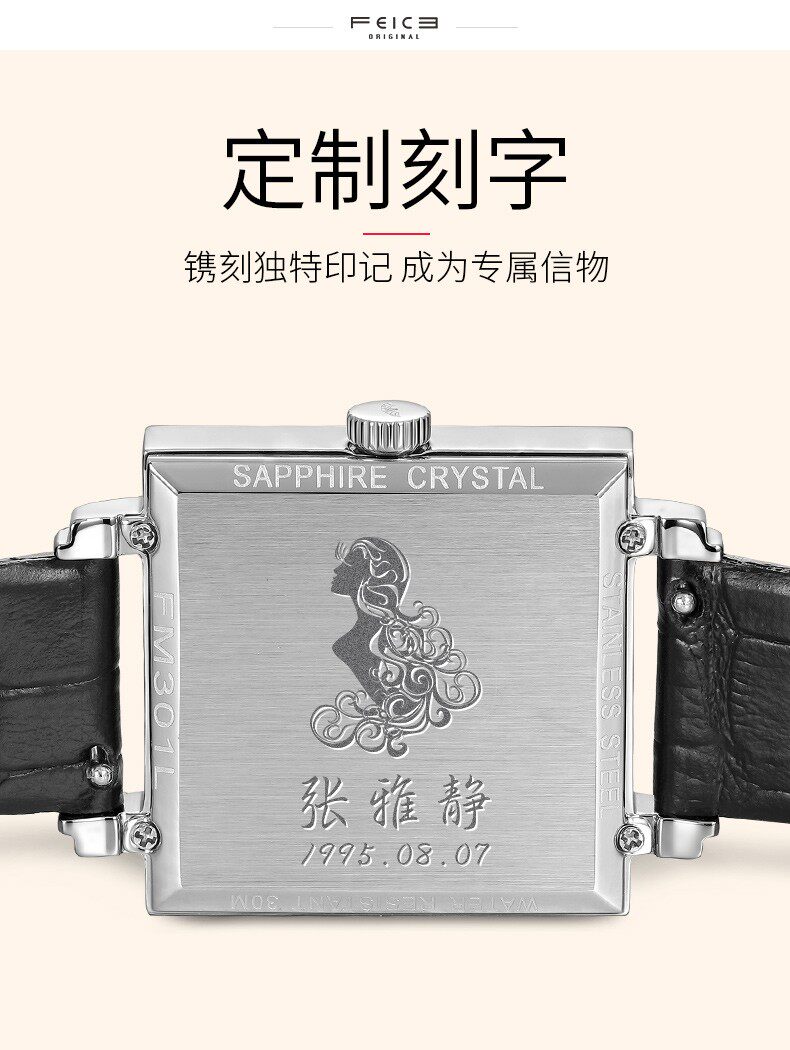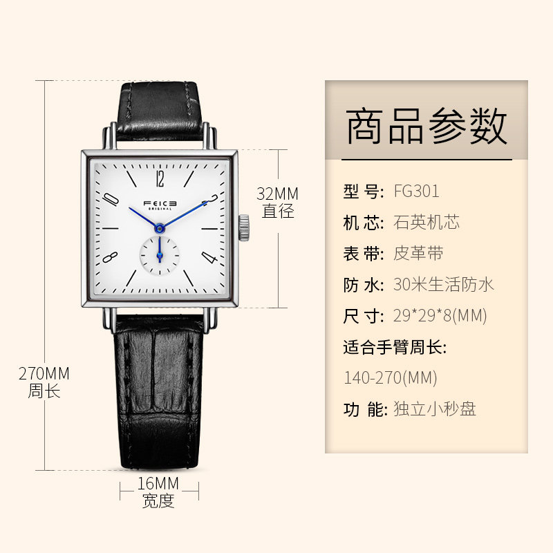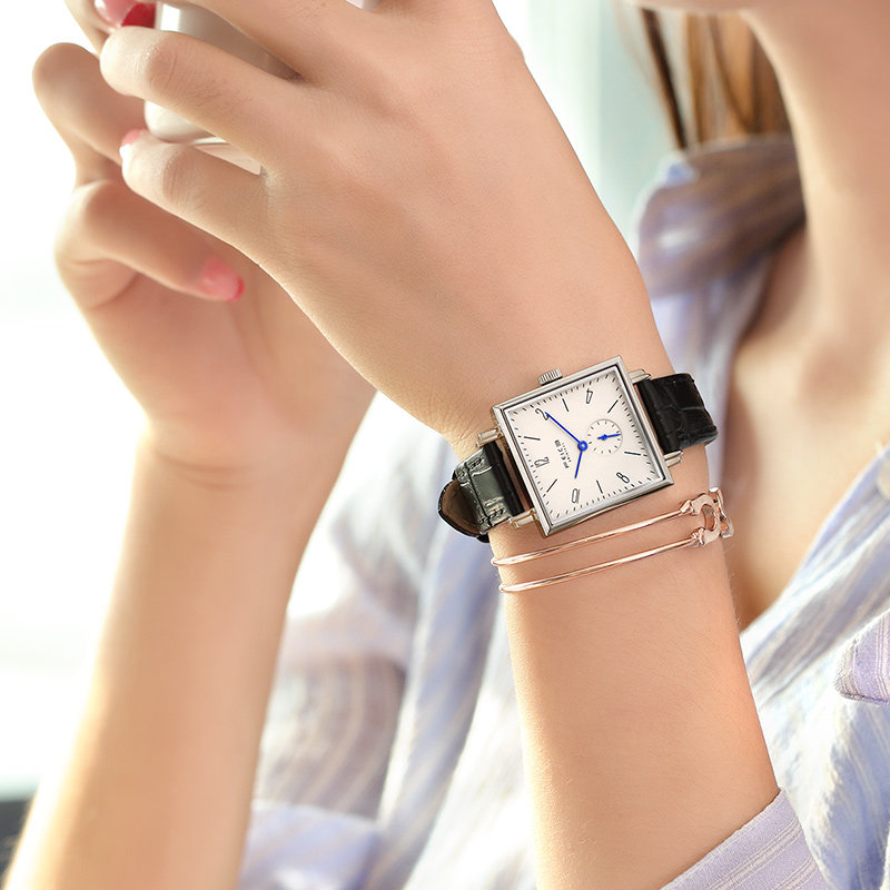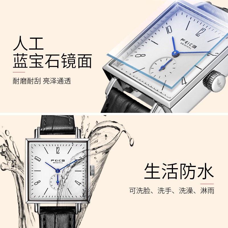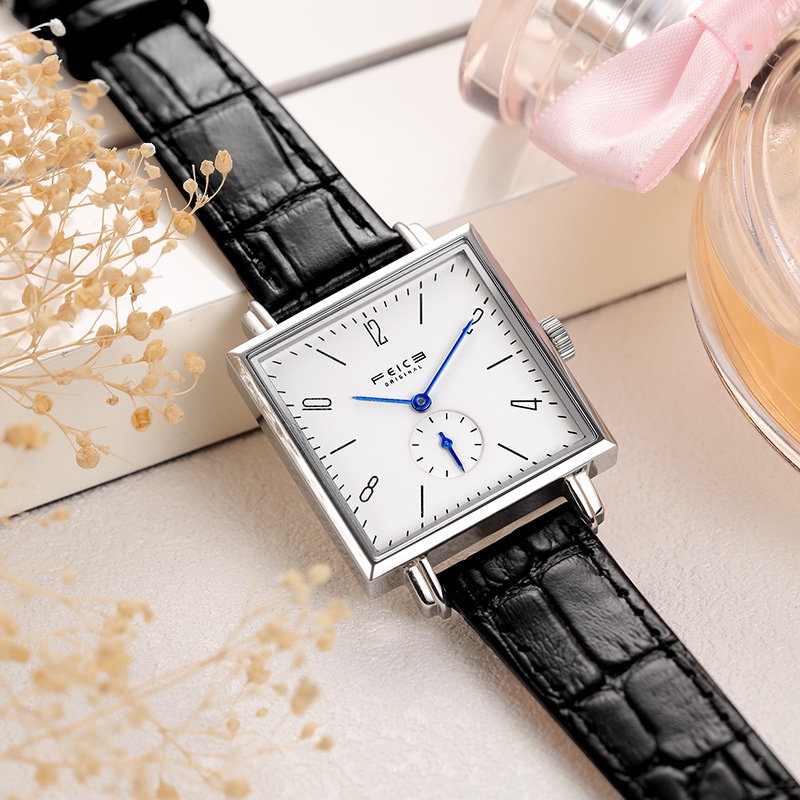 飞克 Квадратные швейцарские часы, модный водонепроницаемый ремень, женские часы, простой и элегантный дизайн, из натуральной кожи