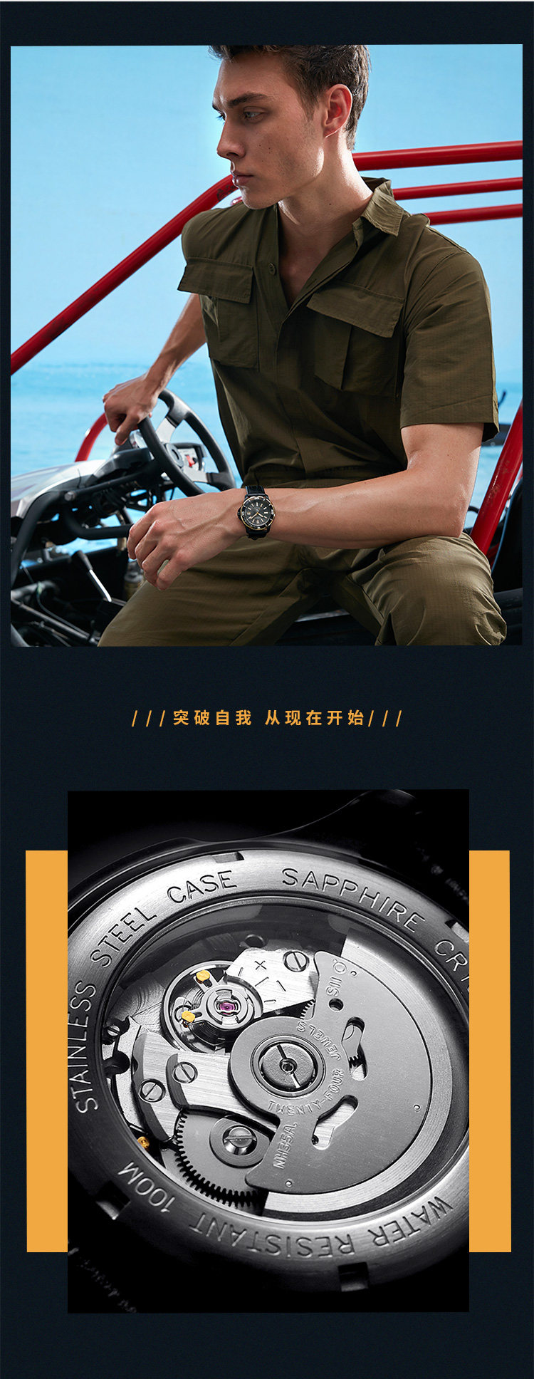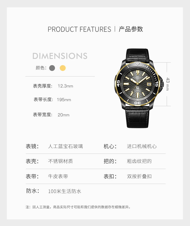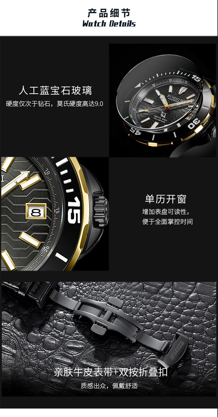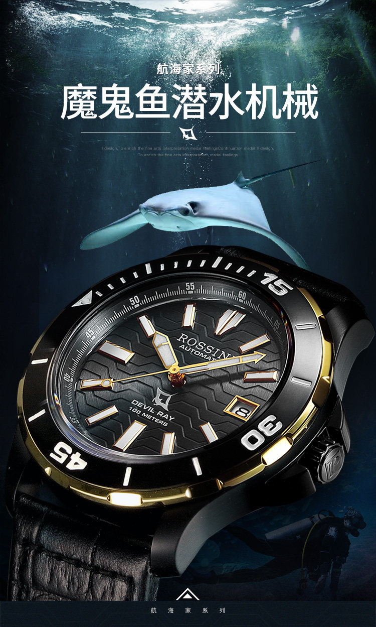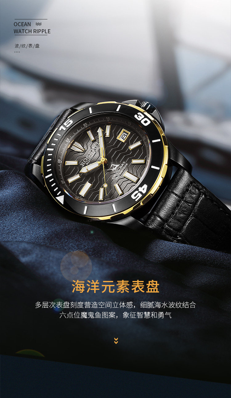 Rosini Watch Men's Airlines Sea Family Series Diving Men's Watch 100 м В водонепроницаемых ночах машины Water Ghost 5679