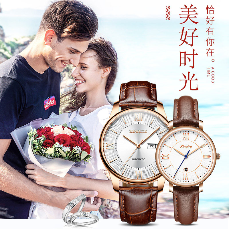 Водонепроницаемый календарь подходит для мужчин и женщин для влюбленных, трендовые механические механические часы, в корейском стиле, простой и элегантный дизайн