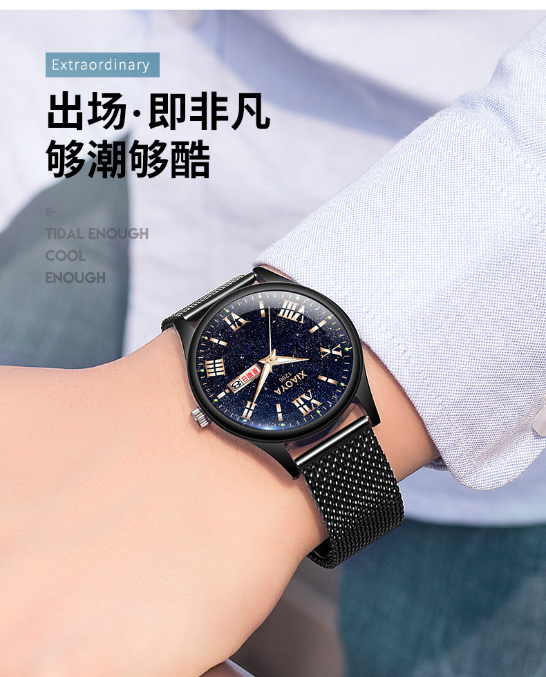TikTok, модное звездное небо, трендовые автоматические механические водонепроницаемые мужские часы для школьников, в корейском стиле, городской стиль, полностью автоматический