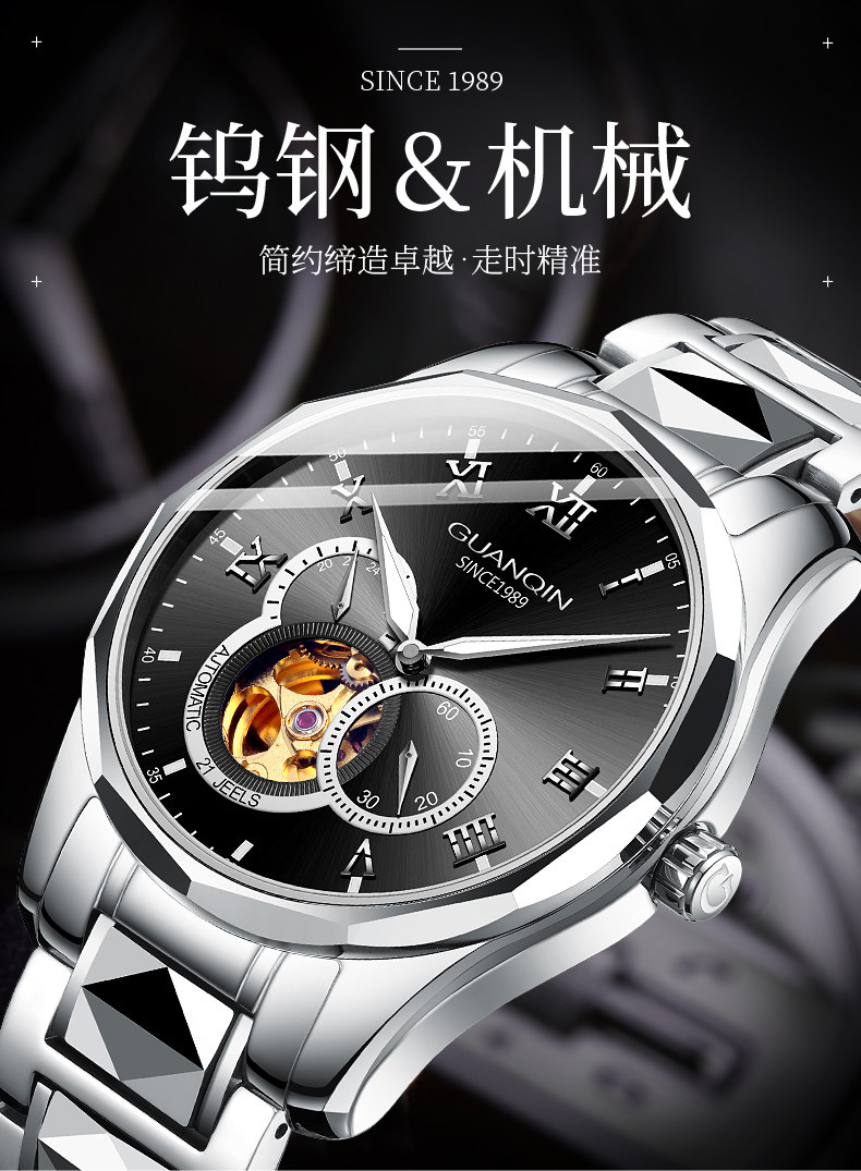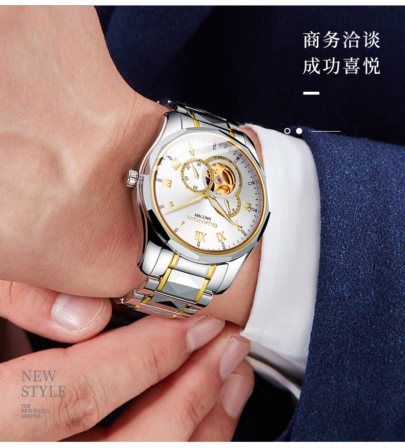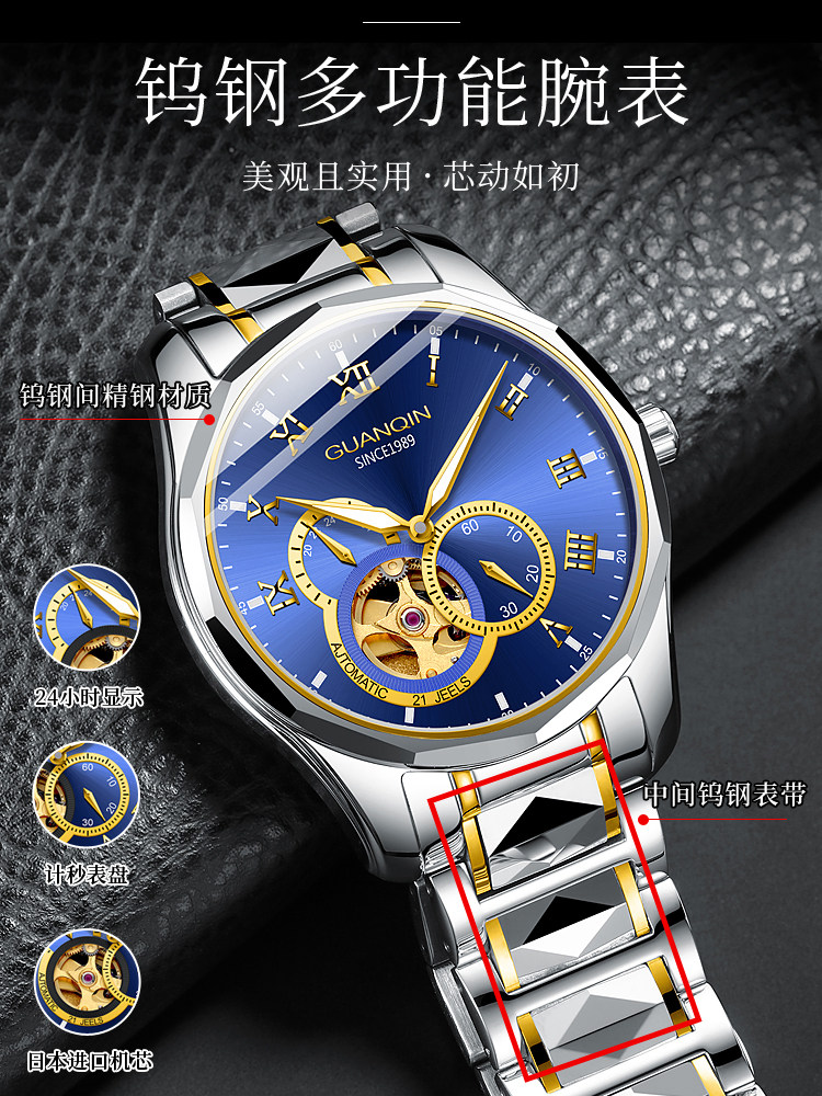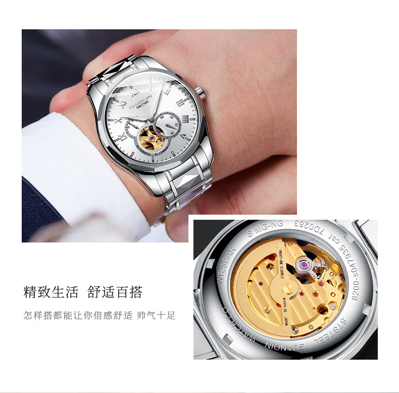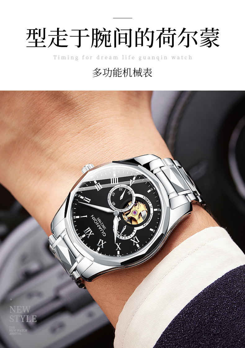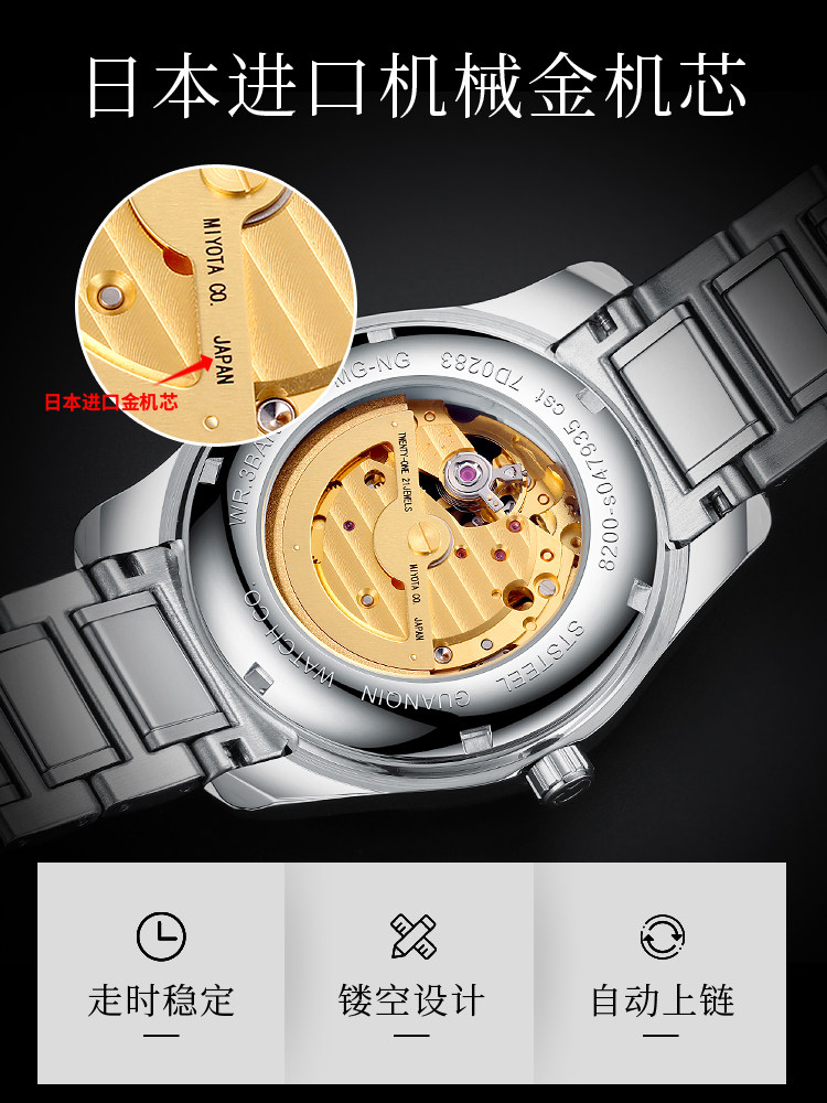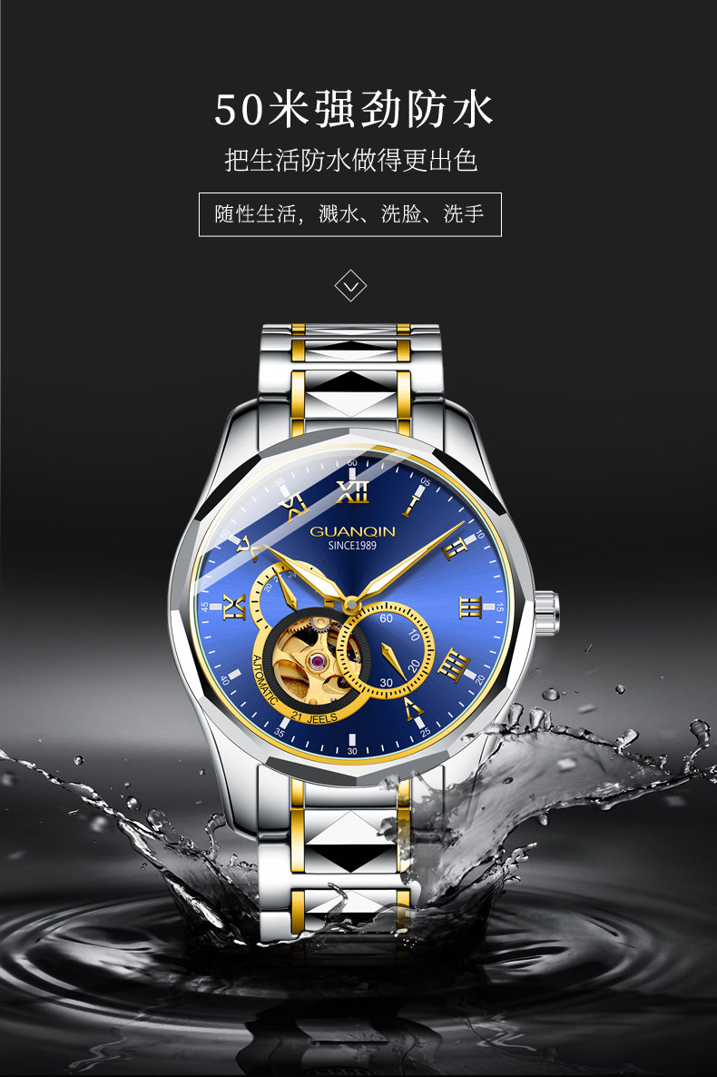 冠琴 Механические мужские часы, водонепроницаемые модные механические часы, полностью автоматический