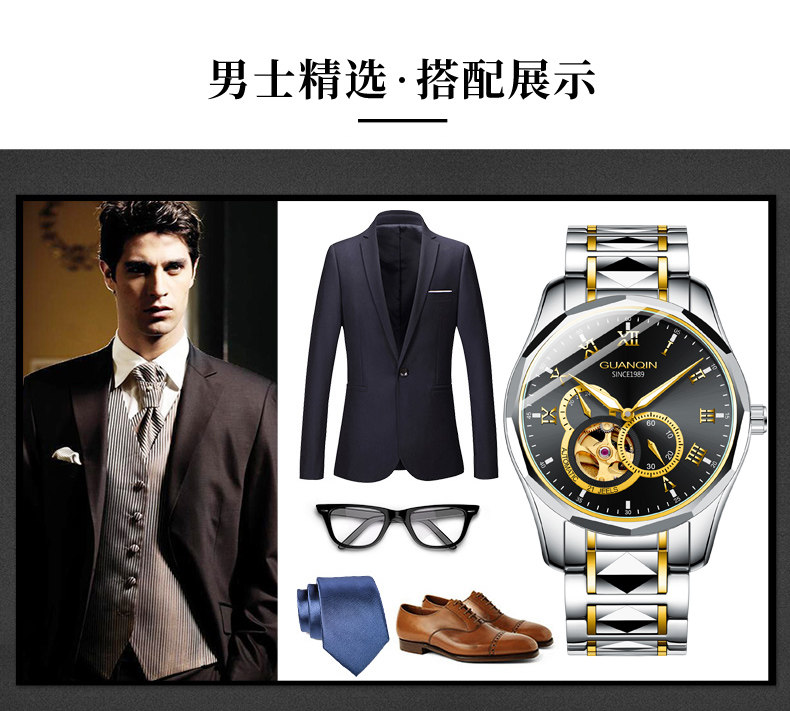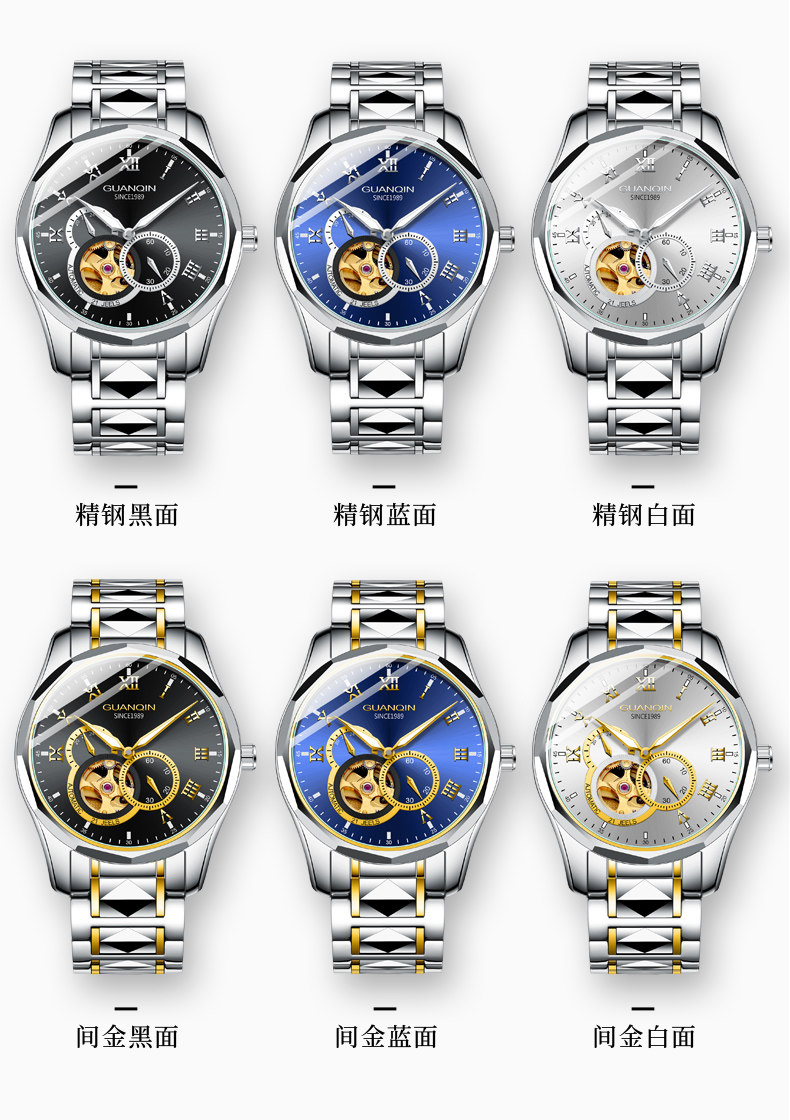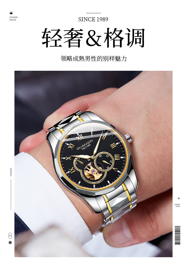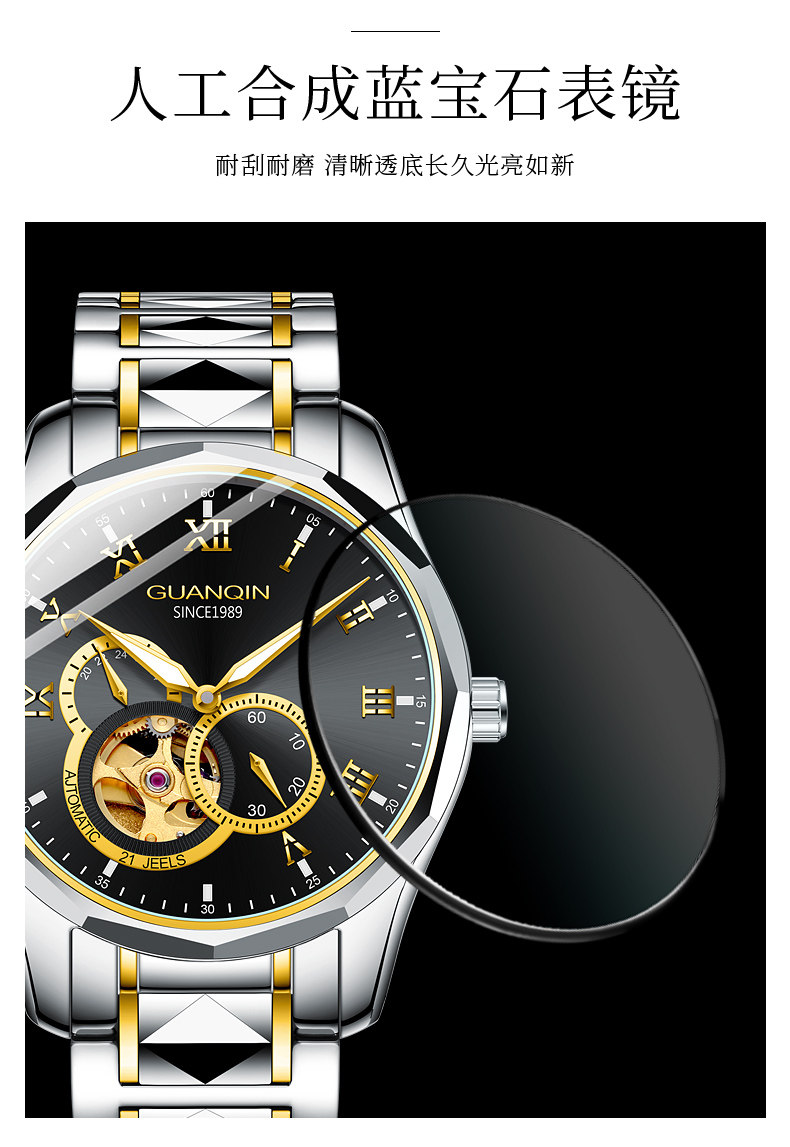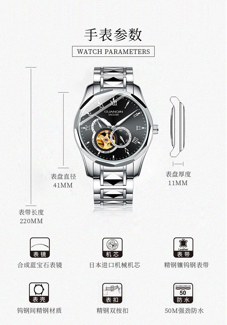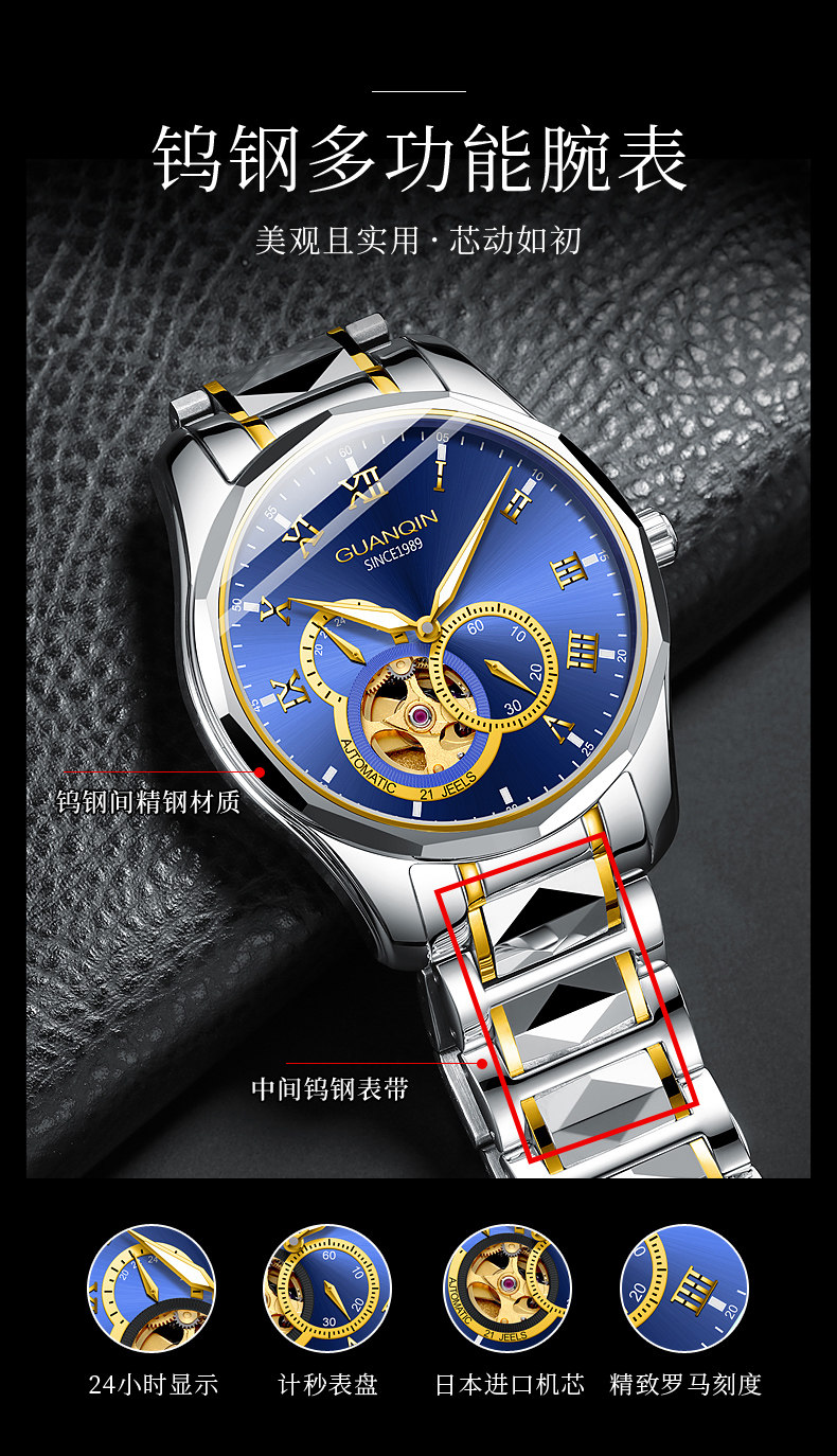 冠琴 Механические мужские часы, водонепроницаемые модные механические часы, полностью автоматический