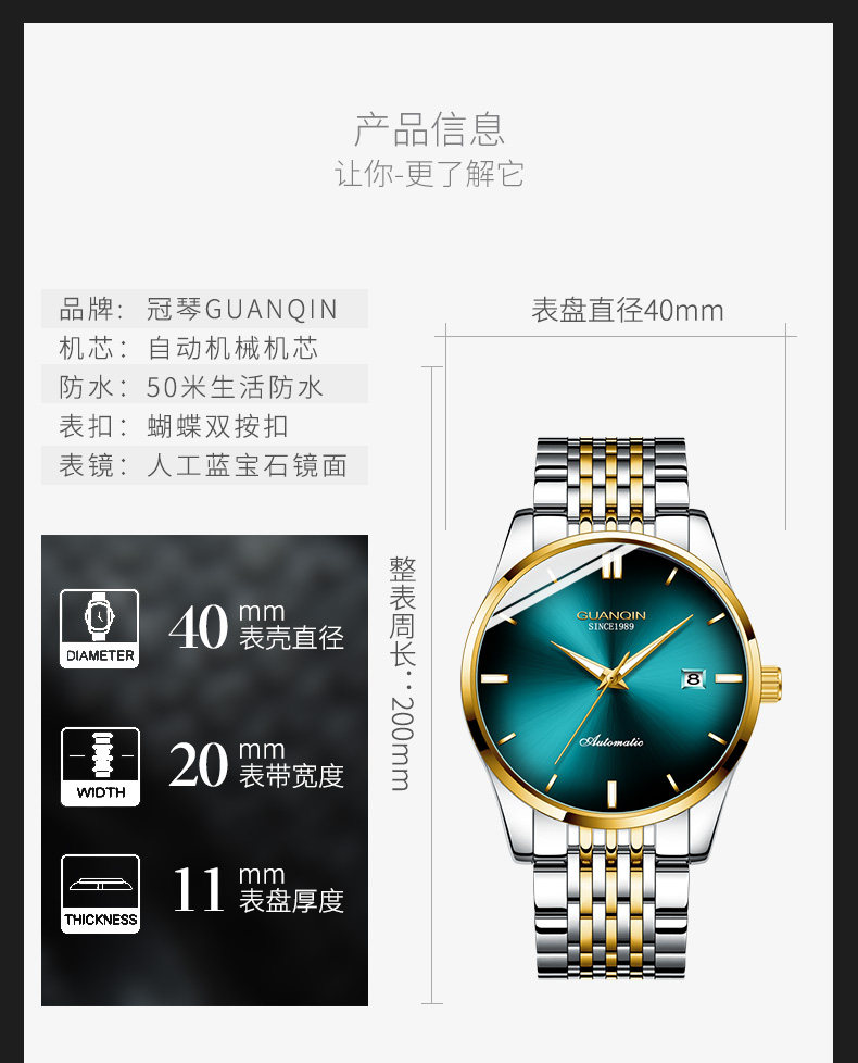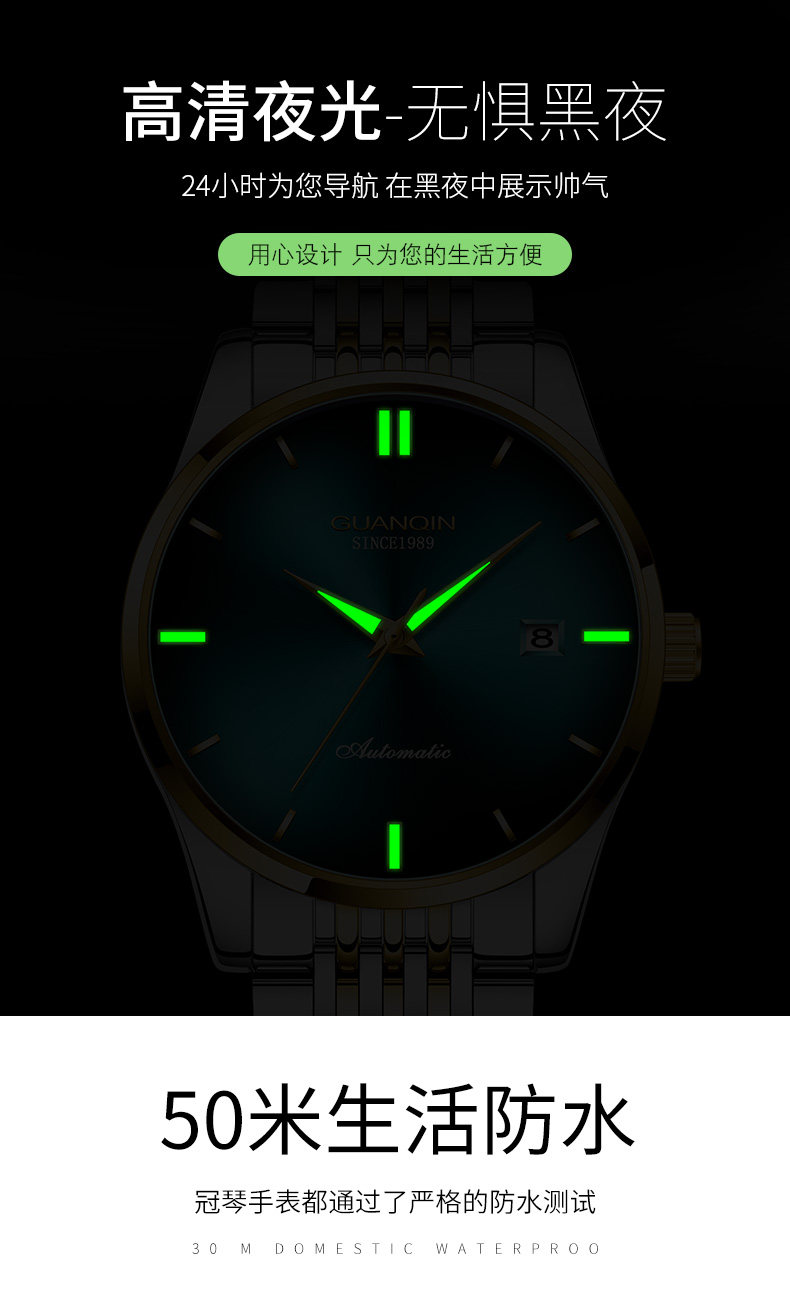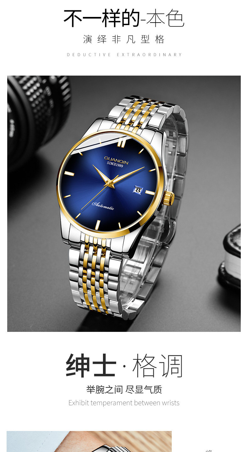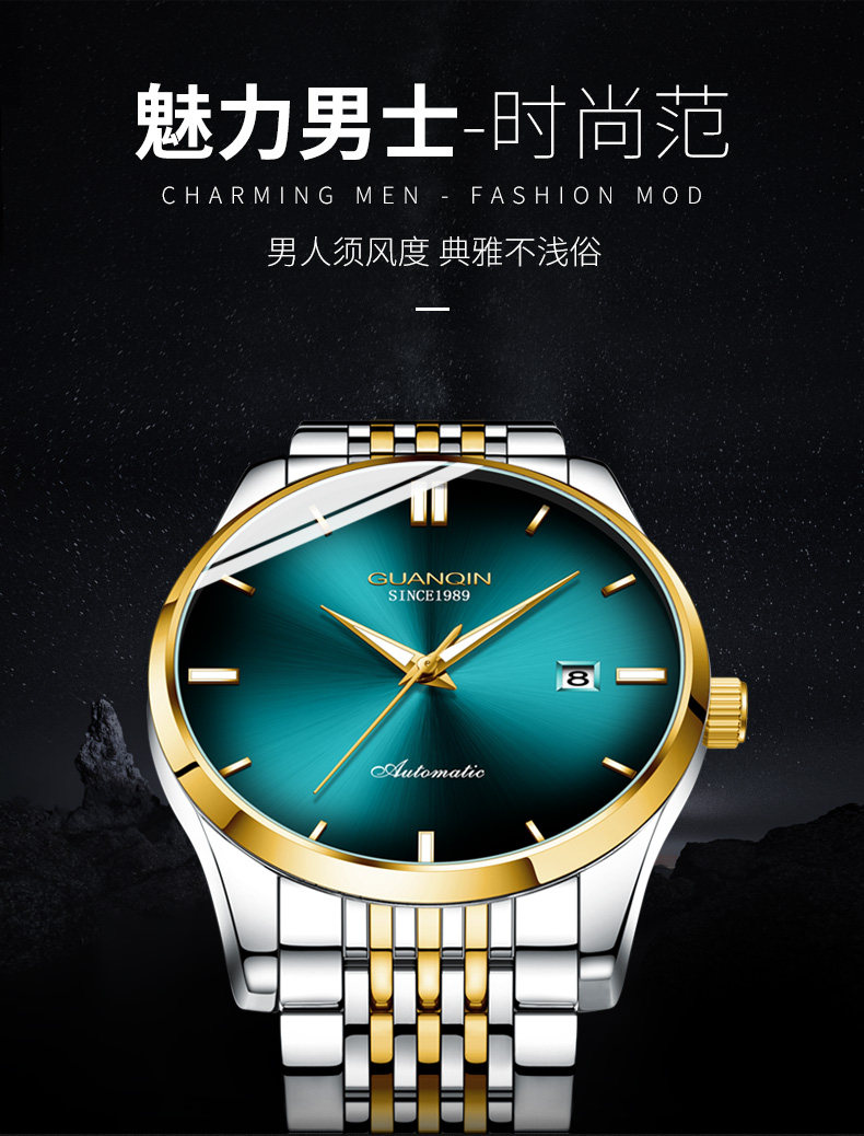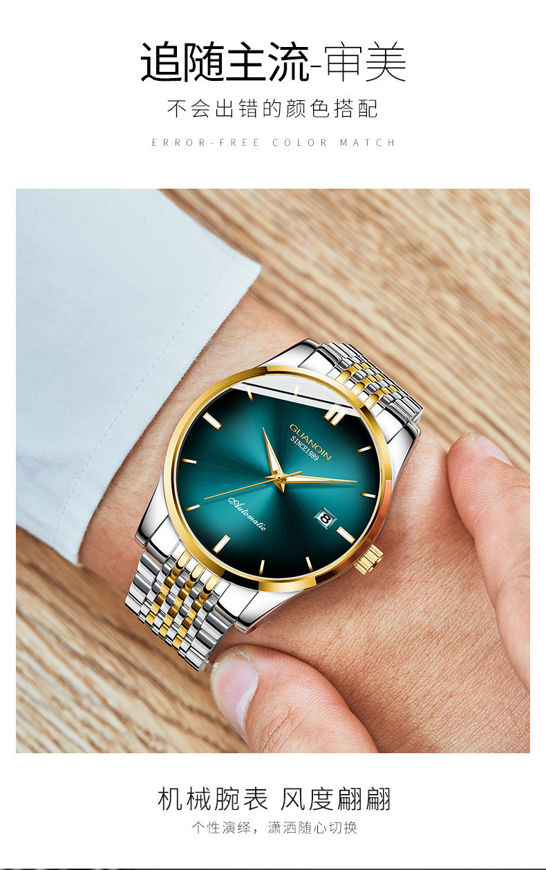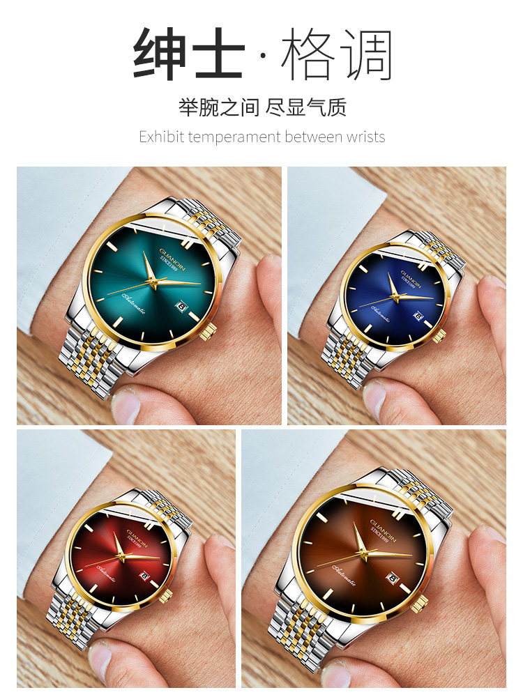 Механические мужские часы, водонепроницаемые трендовые модные механические часы, Швейцария, полностью автоматический, простой и элегантный дизайн