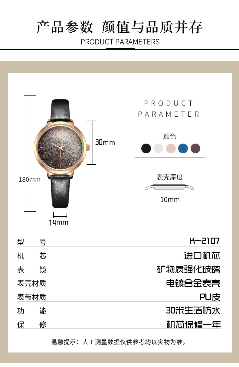 珂紫 Водонепроницаемые ретро брендовые кварцевые часы, в корейском стиле, простой и элегантный дизайн