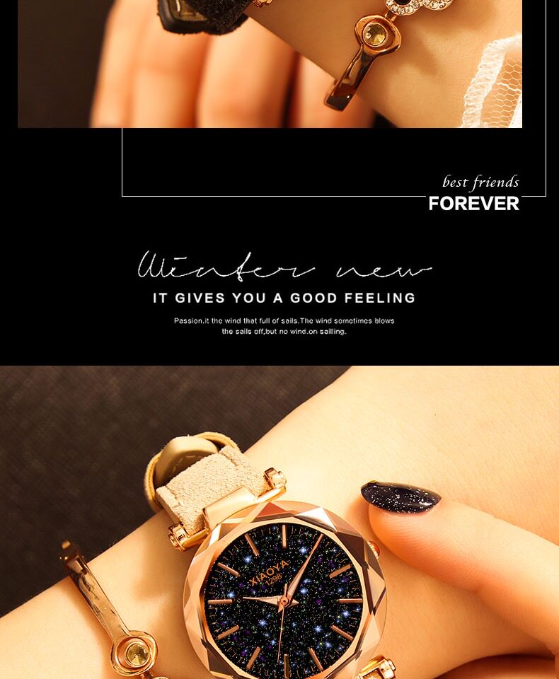 Трендовое водонепроницаемое модное звездное небо для школьников, брендовые женские часы, 2020 года, новая коллекция, в корейском стиле, простой и элегантный дизайн