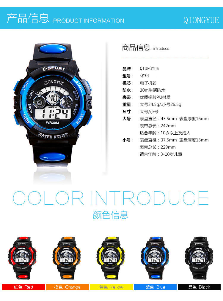 Детские водонепроницаемые трендовые электронные часы для мальчиков, защита при падении, подходит для подростков
