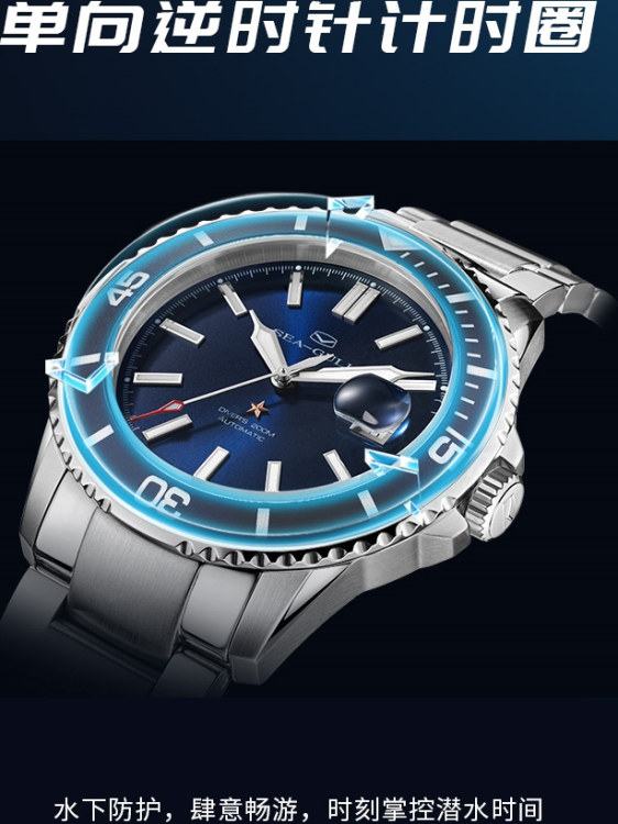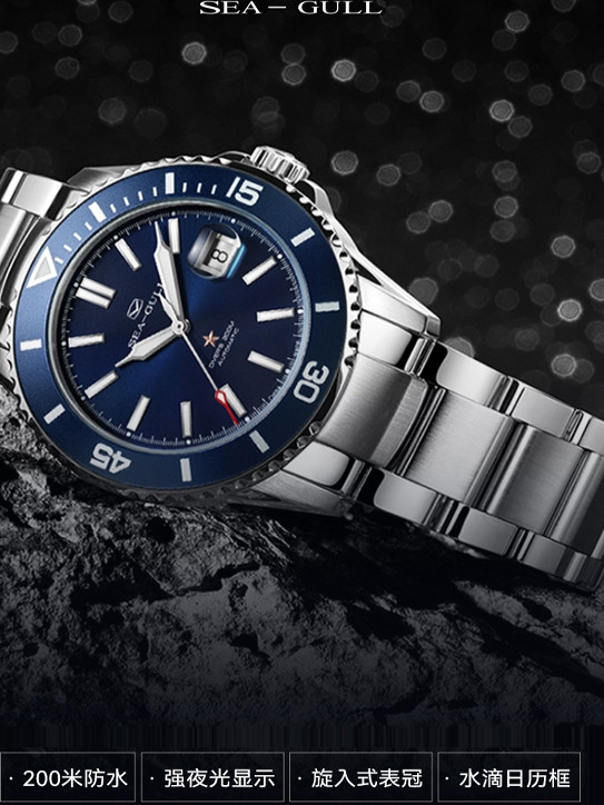 Морской стальной ремешок, механические механические часы, 200м