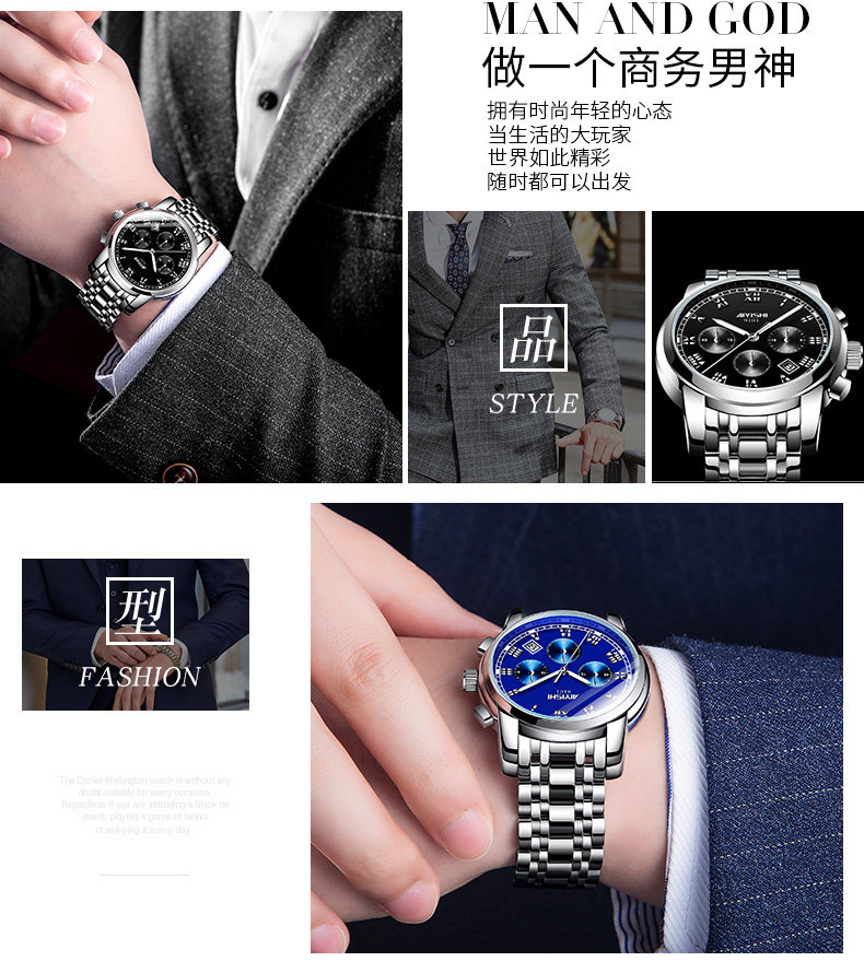 Водонепроницаемые спортивные швейцарские часы, механический электронный календарь, мужские часы, полностью автоматический, в корейском стиле, простой и элегантный дизайн
