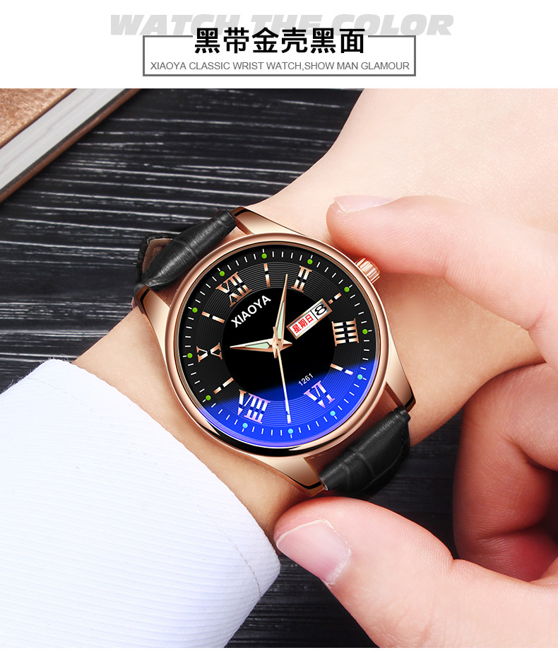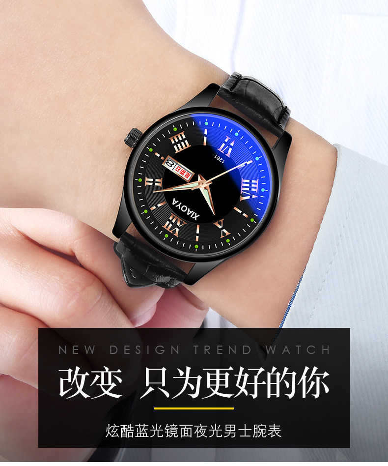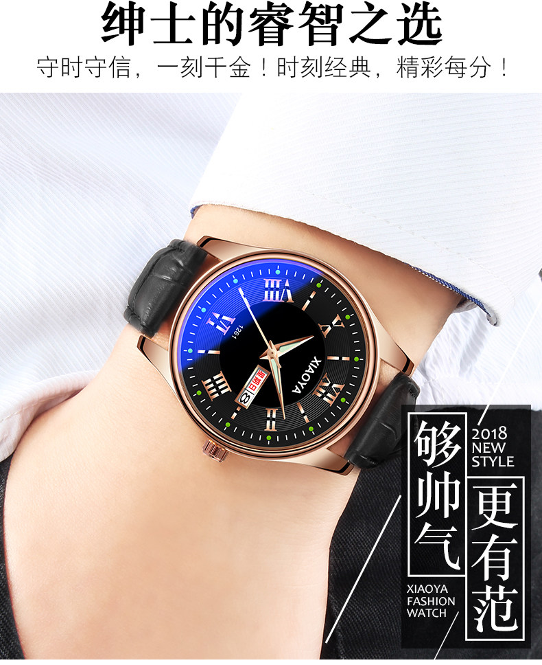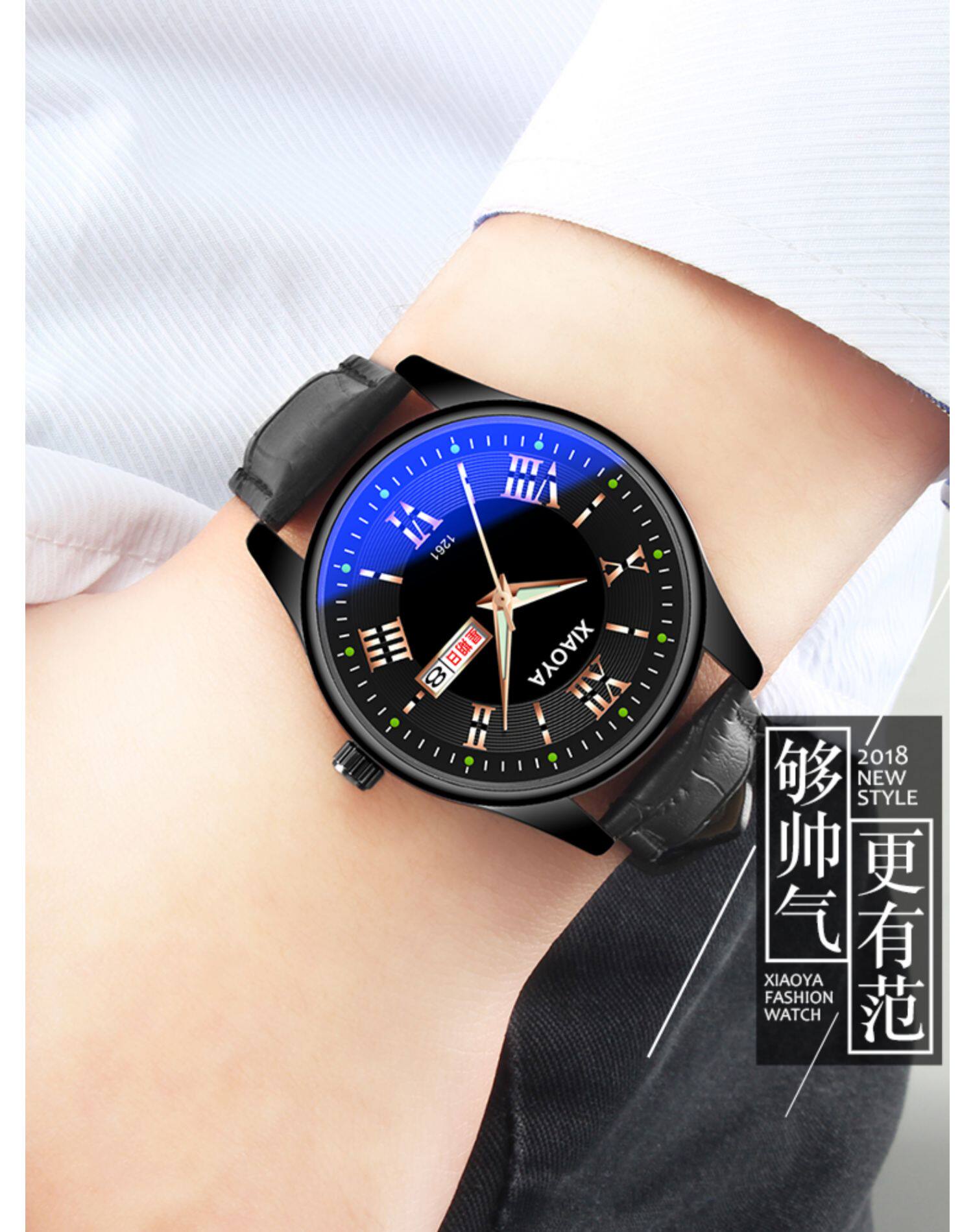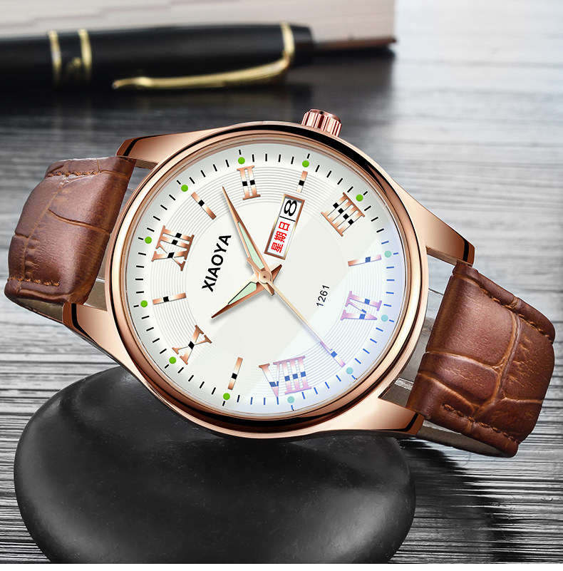 Водонепроницаемые мужские часы, механический календарь, кварцевые часы, мужской трендовый модный ремень, в корейском стиле, простой и элегантный дизайн